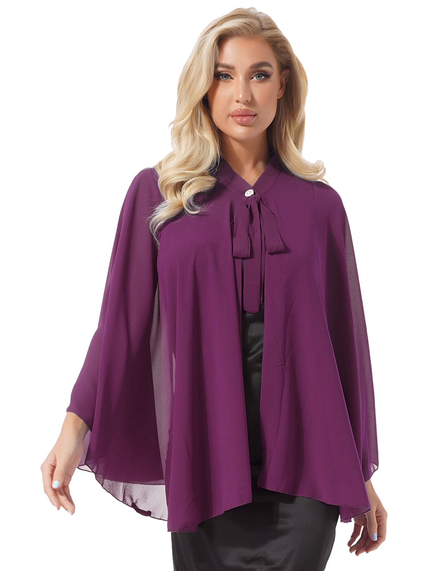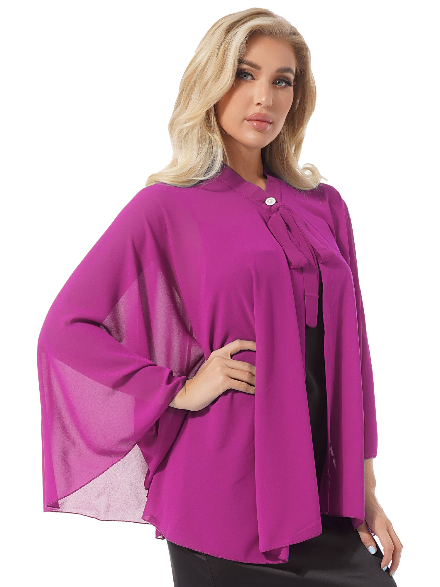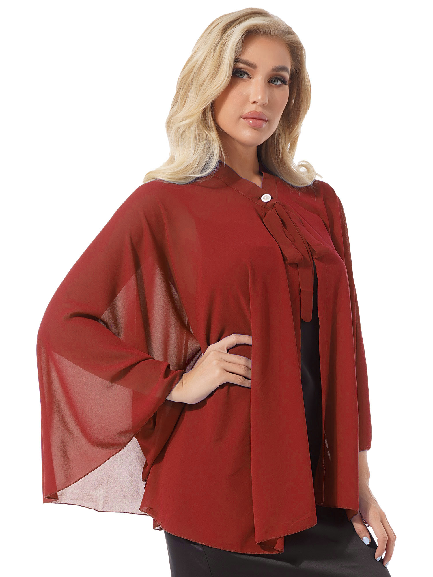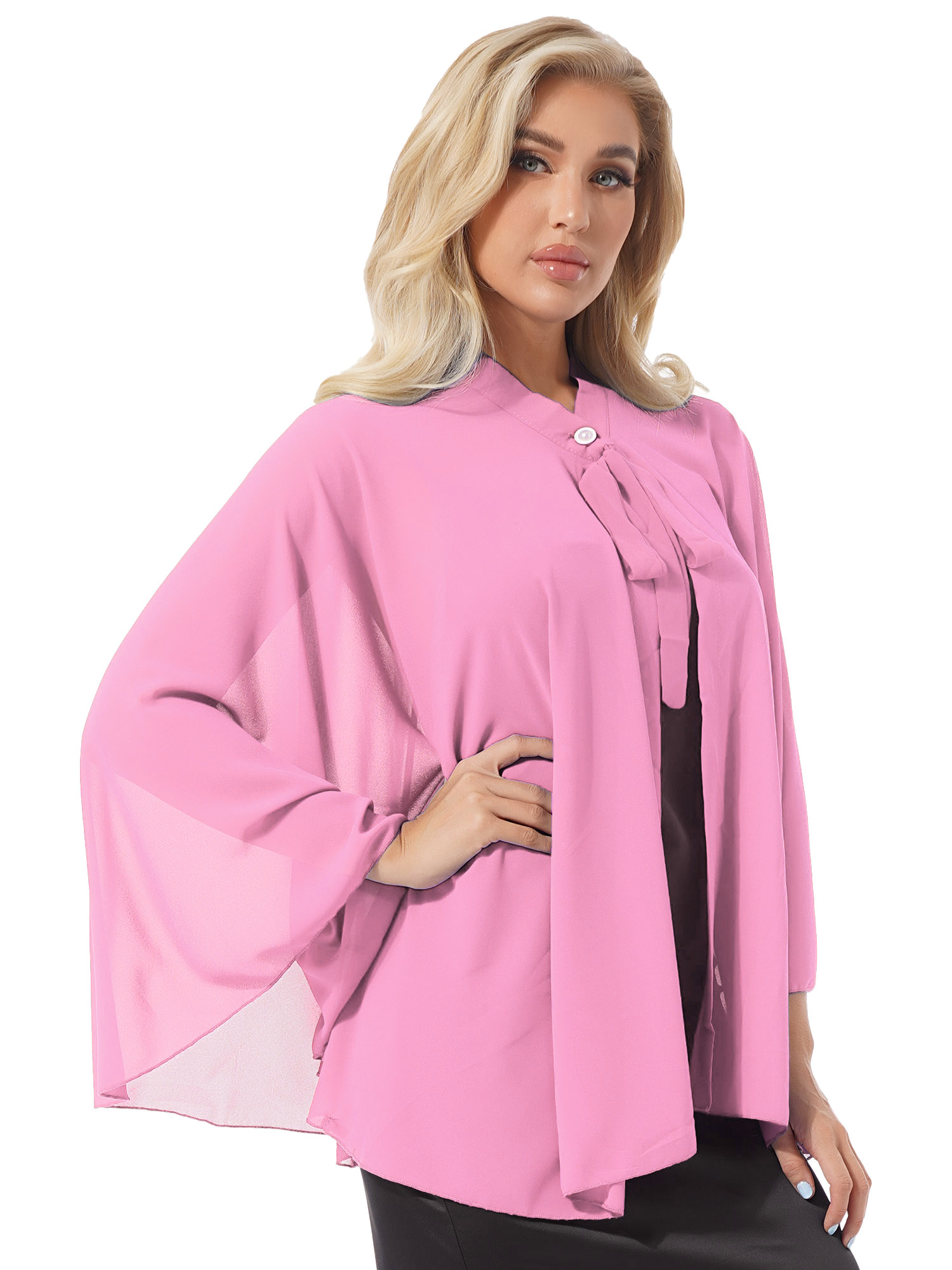 Однотонная накидка для женщин; Дизайн с застежкой на одной пуговице и бантом на шнуровке для украшения.