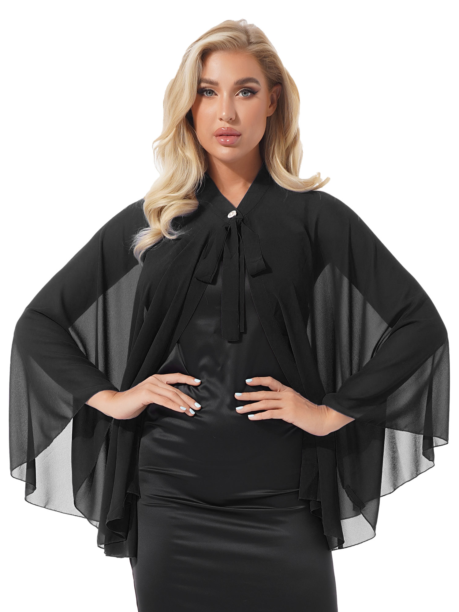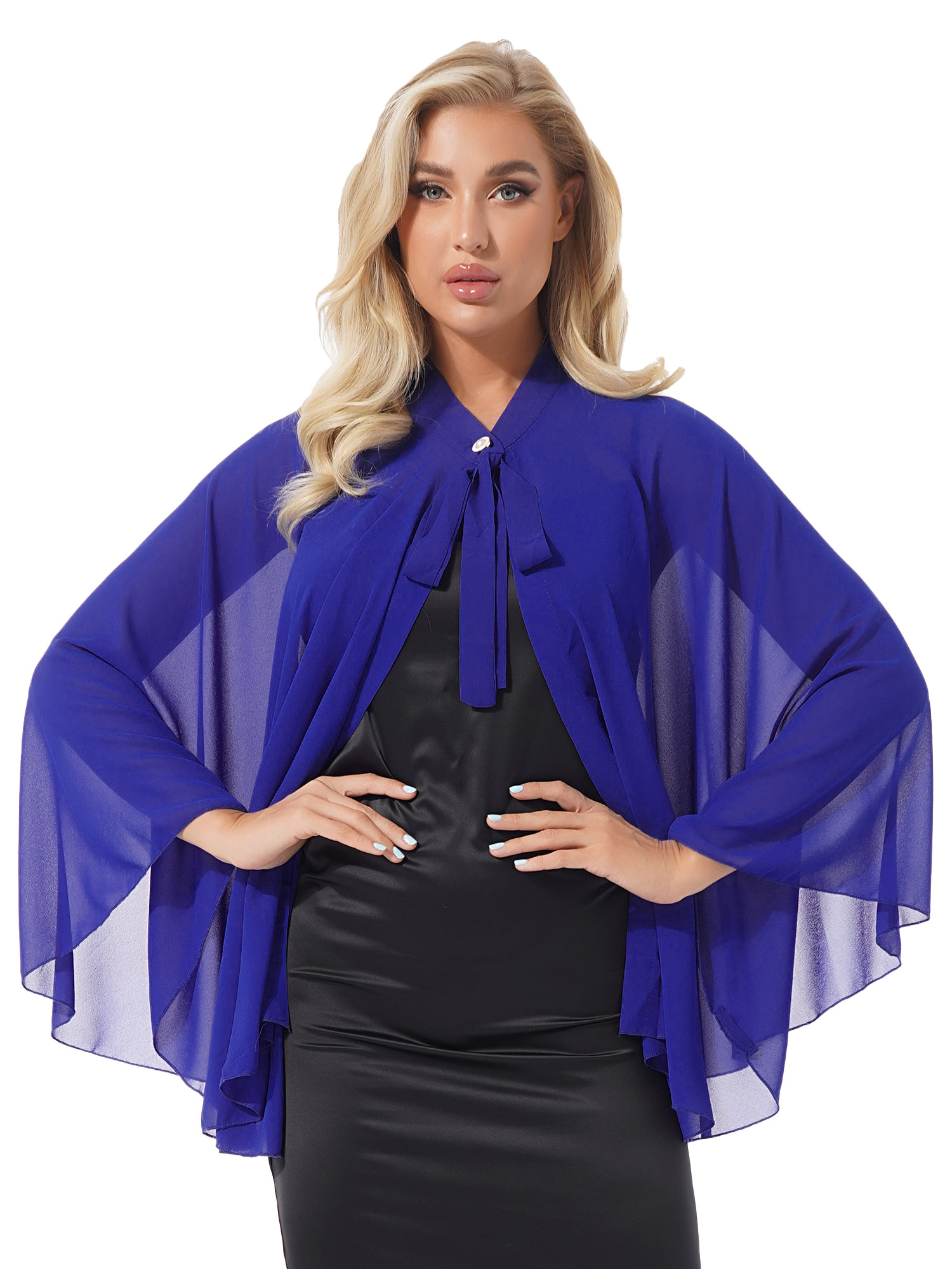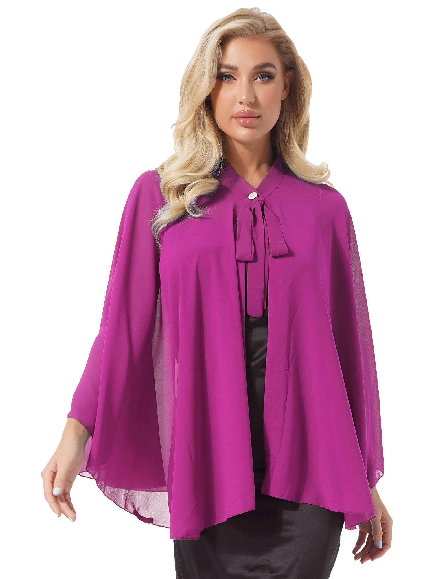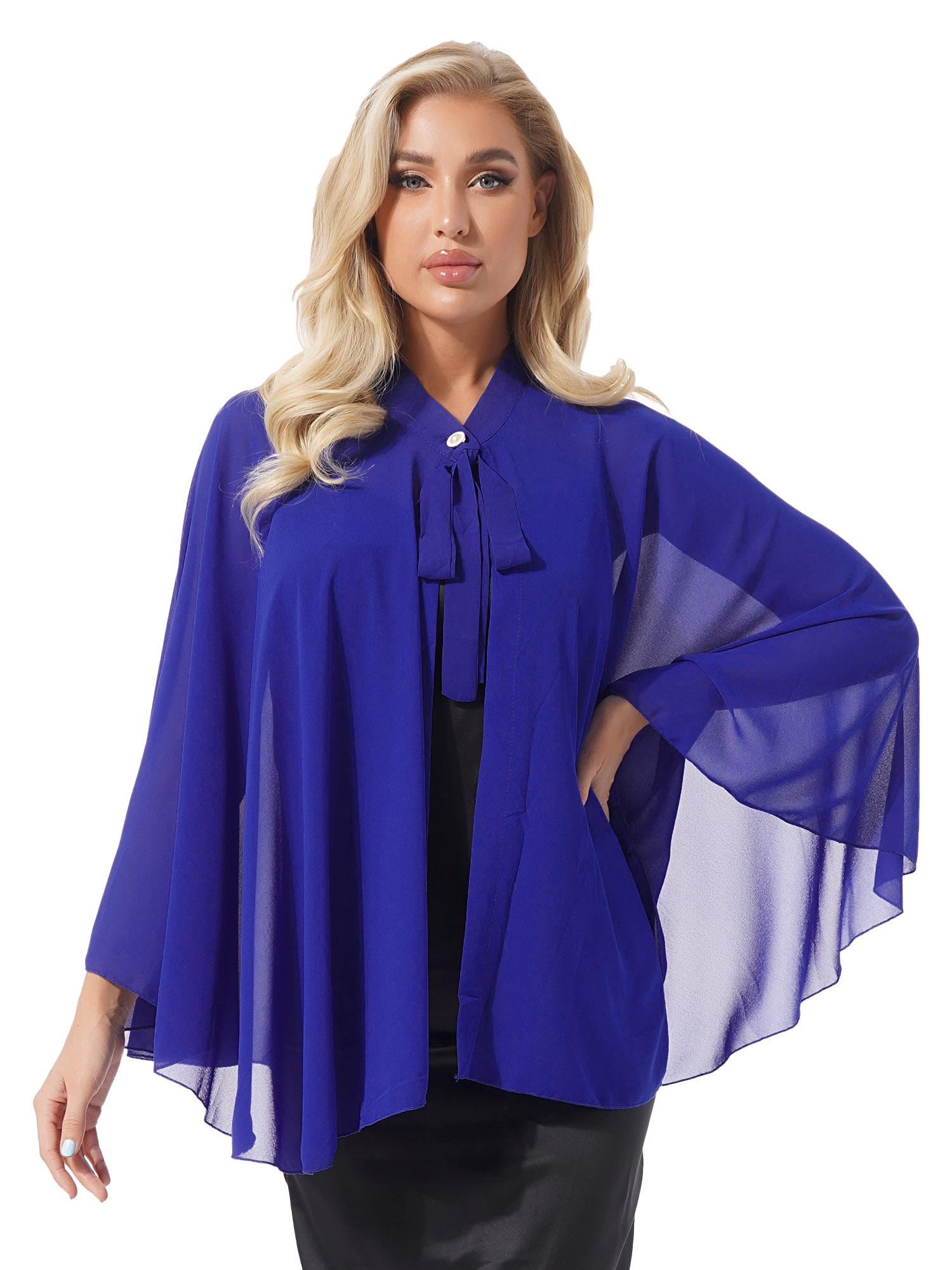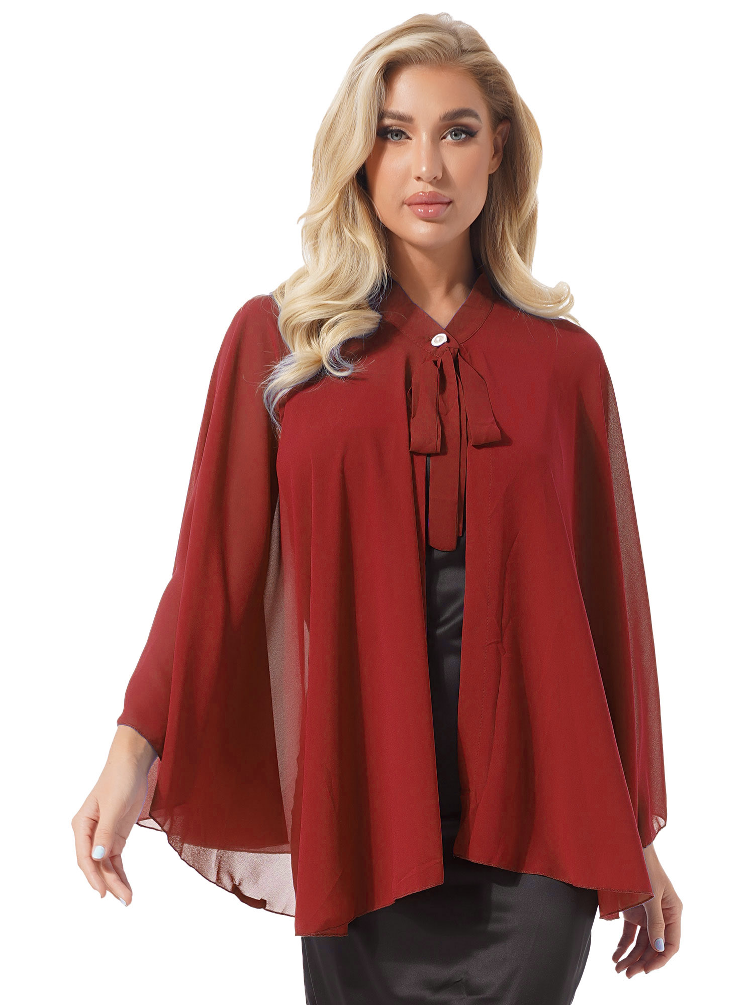Однотонная накидка для женщин; Дизайн с застежкой на одной пуговице и бантом на шнуровке для украшения.