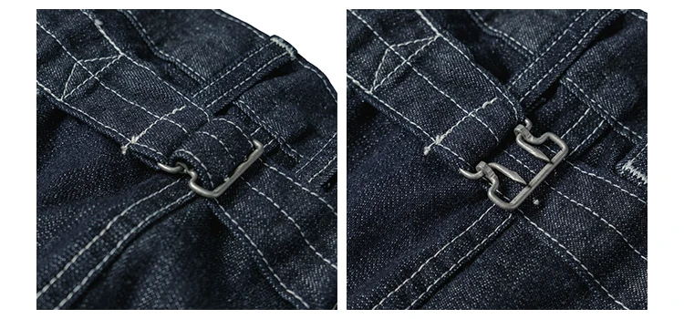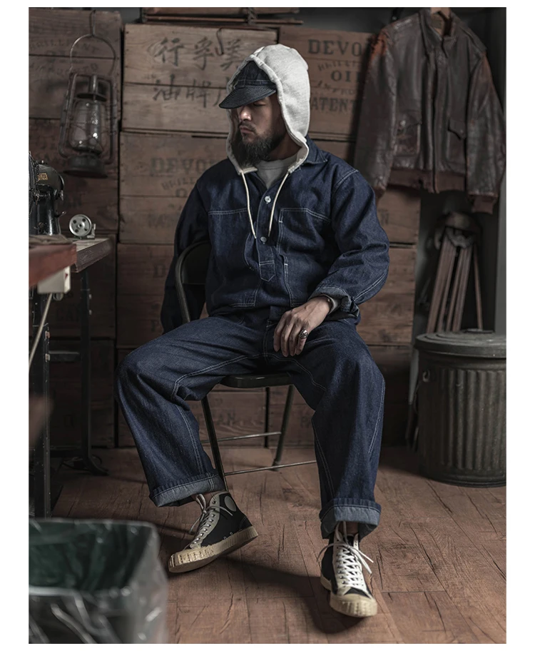 Эти джинсы являются частью утомительной униформы CCC (Более ранняя версия была коричневой саржевой тканью, выпущенной армией США в 1919 году). Эти джинсы сочетаются с джемпером с эффектом усталости и круглой шляпой с полями (шапка Daisy Mae), чтобы создать набор униформы с эффектом усталости. К 1942 году, когда Вторая мировая война бушевала и проект действовал, потребность в облегчении труда снизилась, и конгресс голосовал за закрытие программы. Джинсовые комбинезоны больше не используются, они постепенно заменяются тканевыми комбинезонами в елочку.