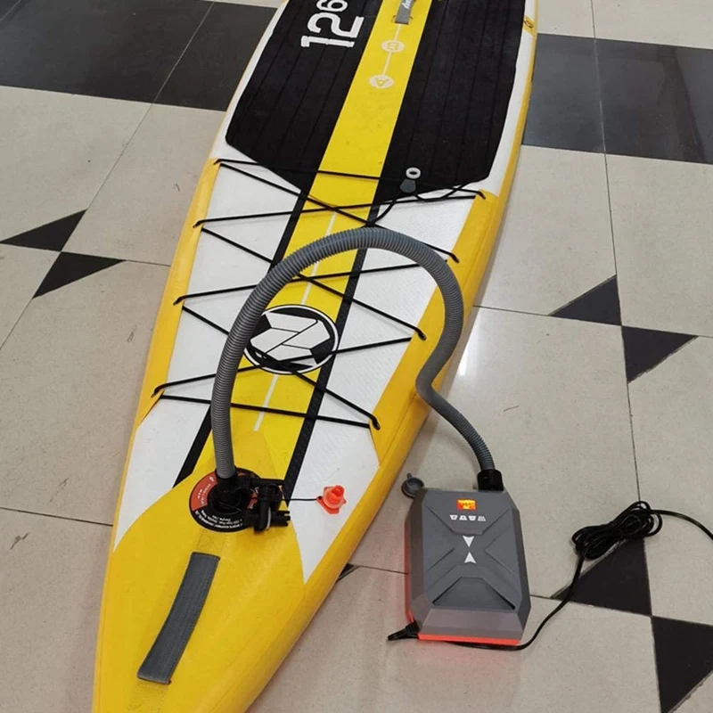 Электрический воздушный насос 20 фунтов на кв. дюйм: быстро и легко надувается и сдувается ваш САП (подставка для весла) и надувные лодки для бассейна для водных видов спорта мгновенно, без переходника космической линии, не нужно беспокоиться о протечке воздуха, проблемах с адаптацией.