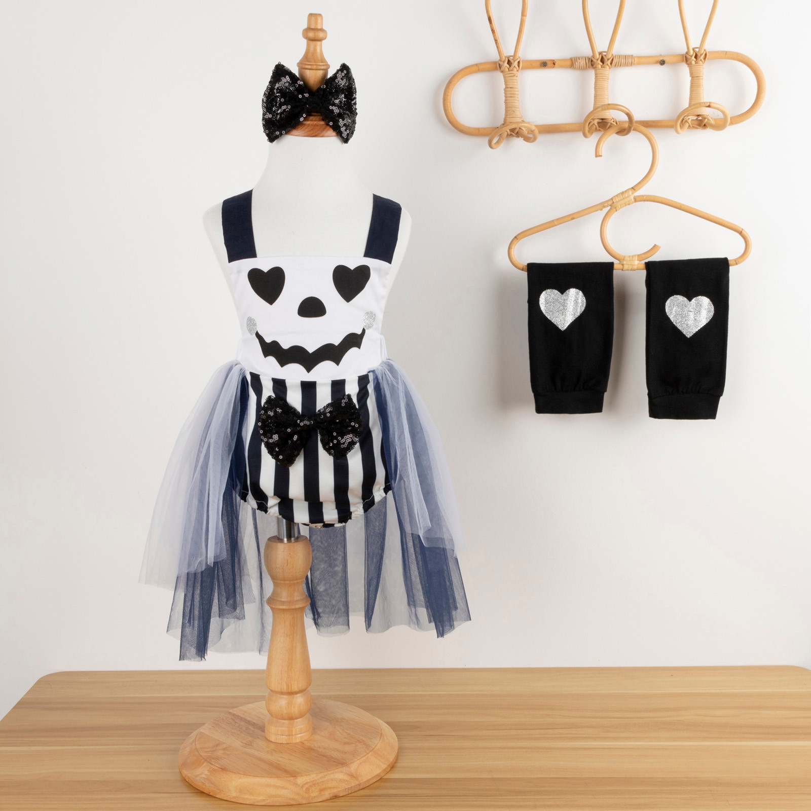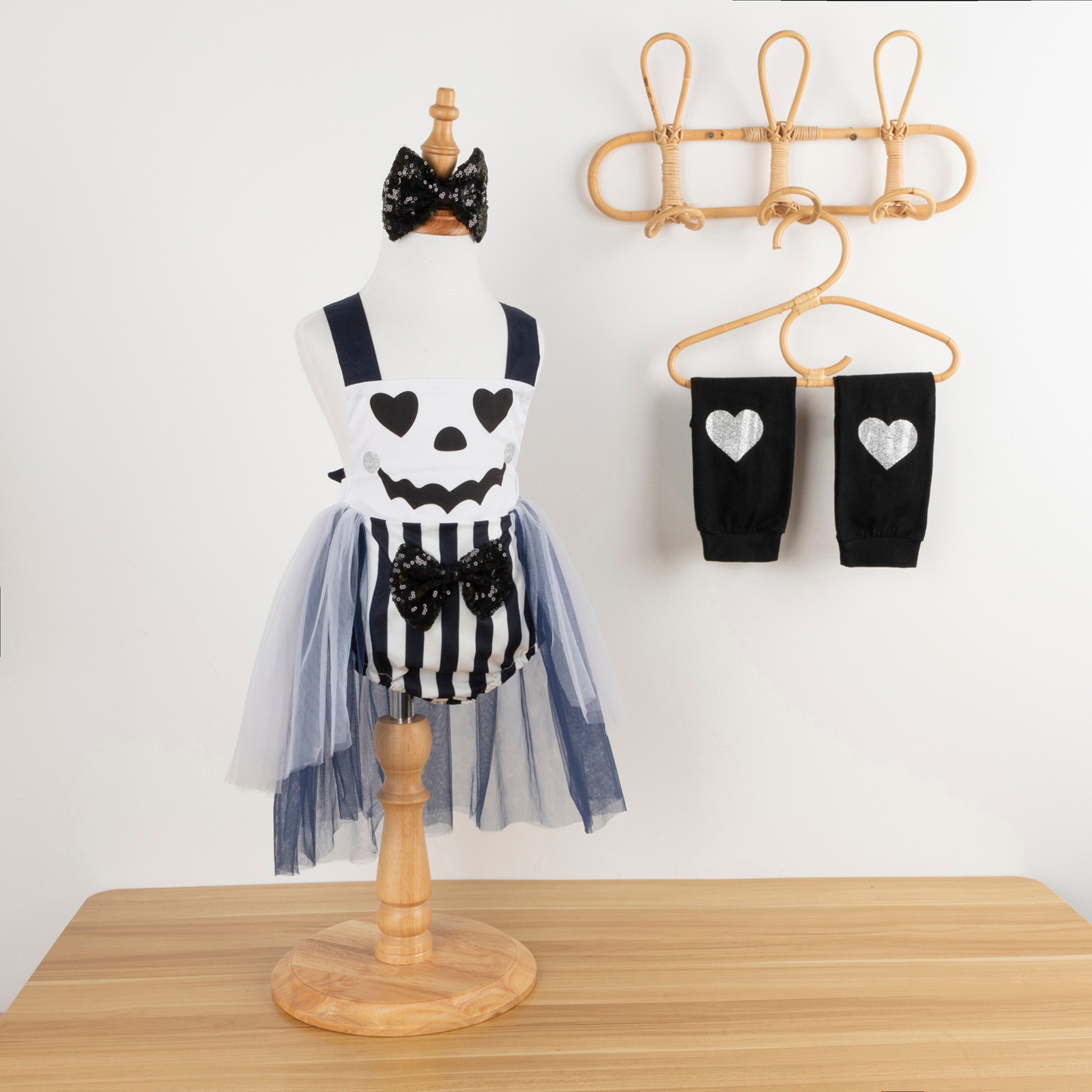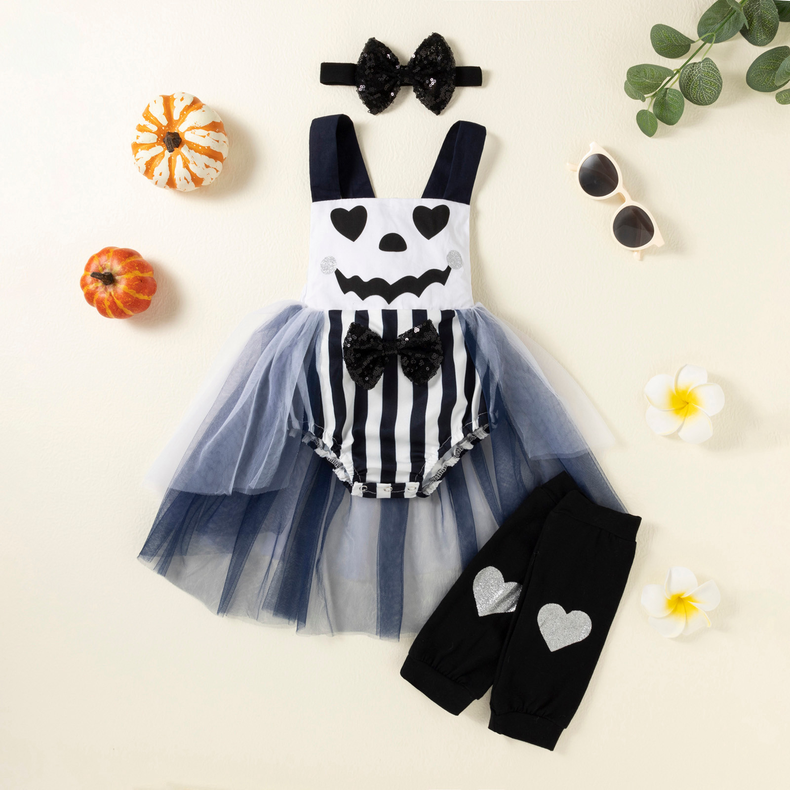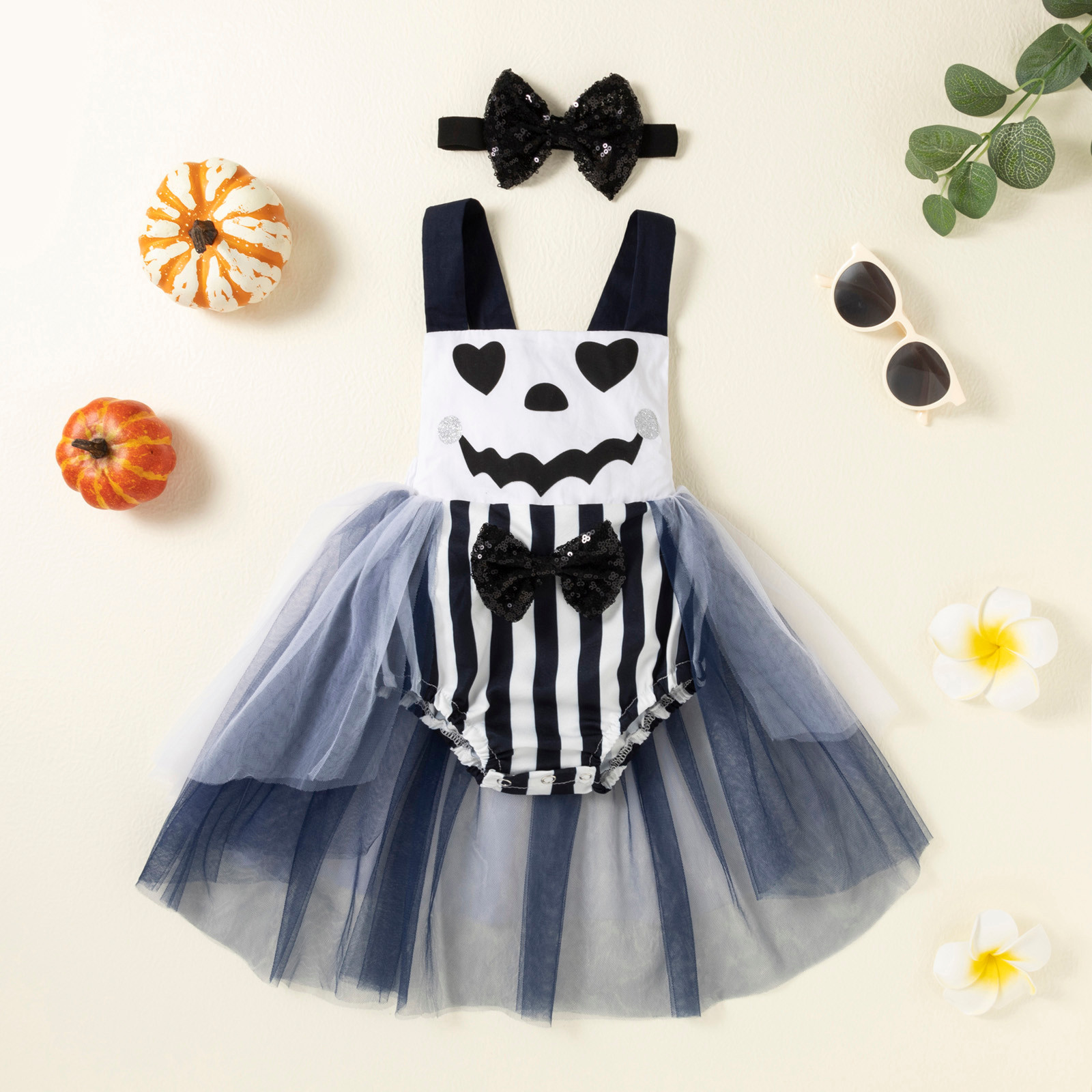 Комплект для новорожденных девочек 0-24 месяцев, носки с бантиком и сеткой на бретельках для Хэллоуина, комбинезон, комплект с юбкой, kleding meisje E1