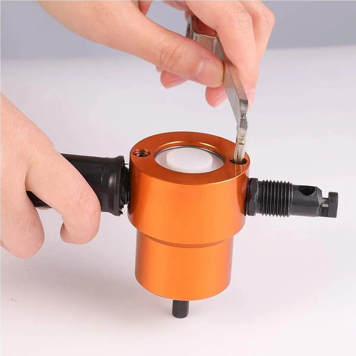 2. Установите инструмент с помощью электродрели или любой дрели, закрепив патрон дрели.
