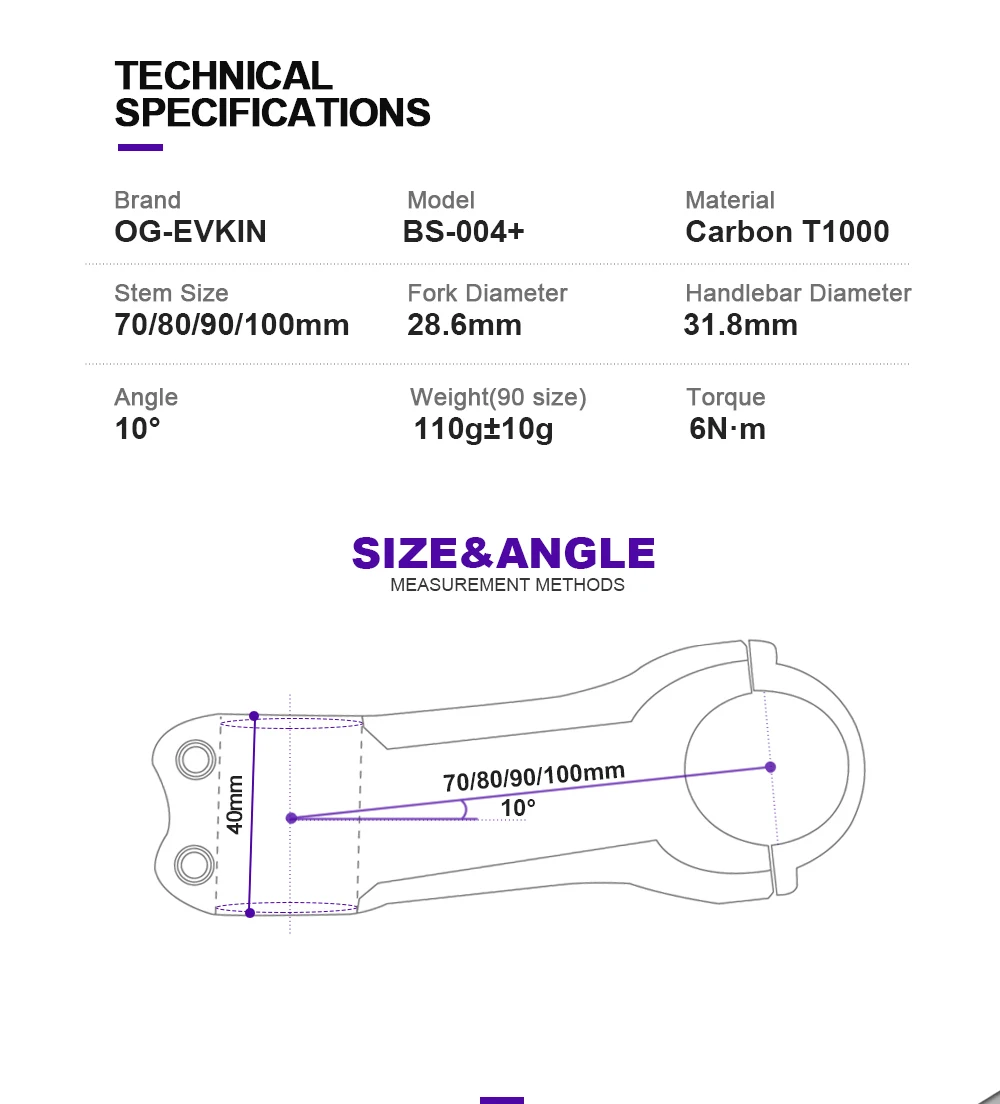OG-EVKIN BS-004 Pro + T1000 углеродный стержень 10 градусов 31,8 мм титановый стержень для шоссейного велосипеда положительные и отрицательные детали для велосипеда MTB