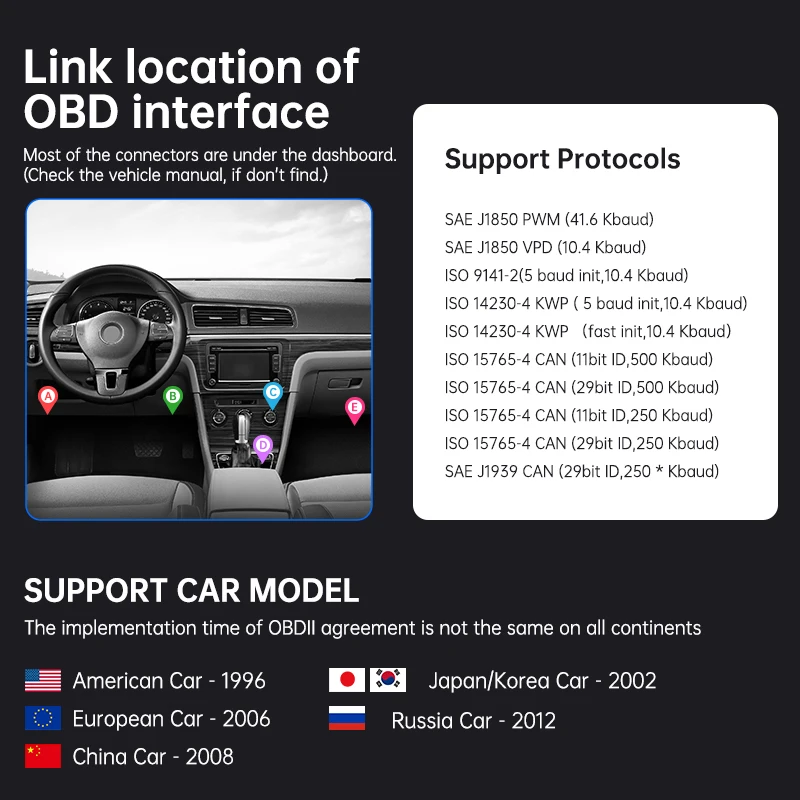 Подходит для более 95% транспортных средств, поддержка 9 протоколов