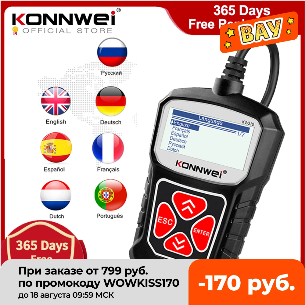 KONNWEI KW310 OBD2 сканер для авто полный OBD 2 Автомобильный сканер диагностический инструмент Автомобильный сканер автомобильные инструменты лучше, чем ELM327