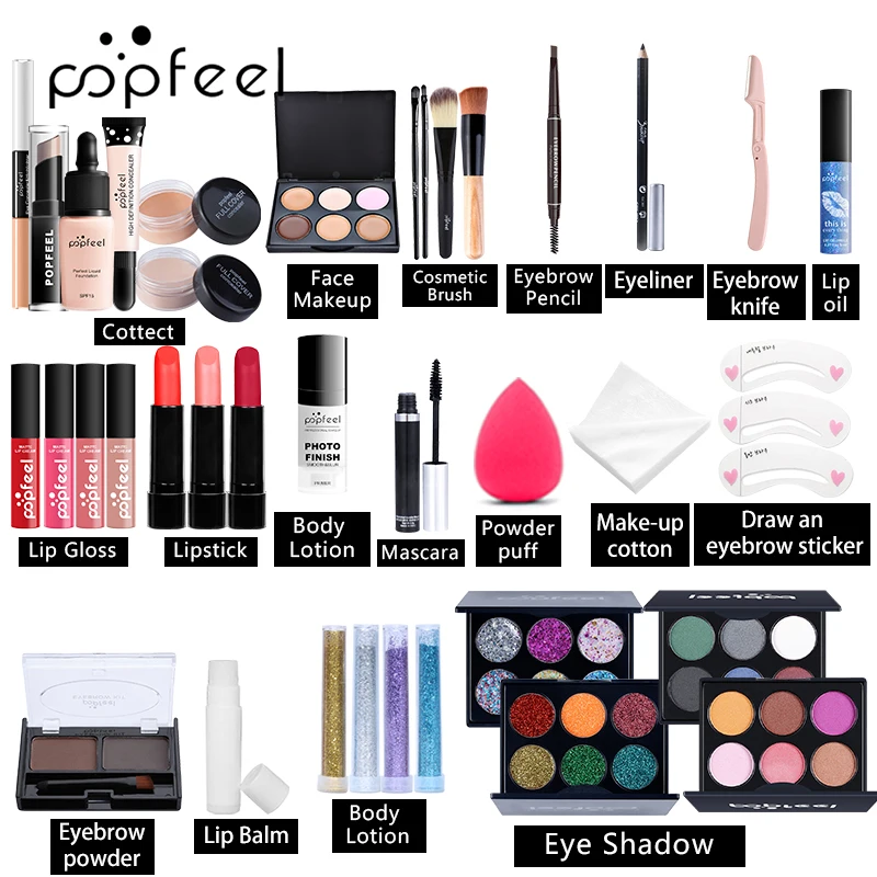 35/27/16 шт. все в одном макияж комплект включает в себя отделка порошок уход за кожей лица жемчужным блеском глаз тени для бровей подводка для глаз подарок на день Святого Валентина, комплект