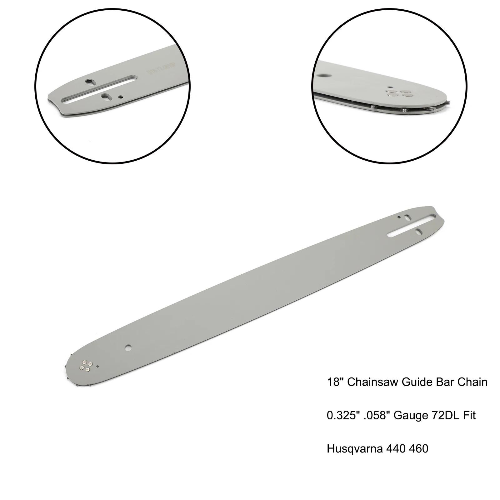 18" Chainsaw Guide Bar Chain 0.325" .058" Gauge 72DL Fit For Husqvarna 440 460Item Pictures