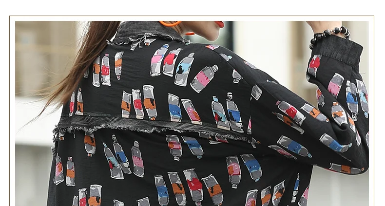 Черные джинсовые лоскутные блузки с принтом