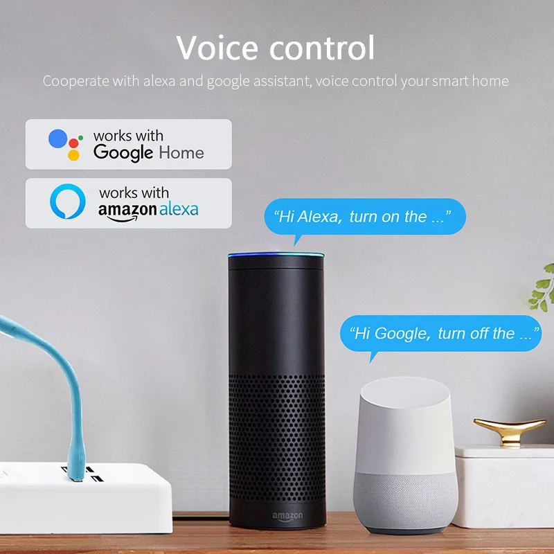 【Поддержка голосового контроллера 】 блок питания совместим с Alexa и Google Home Assistant, что позволяет использовать Голосовое управление smart switch для включения/выключения.