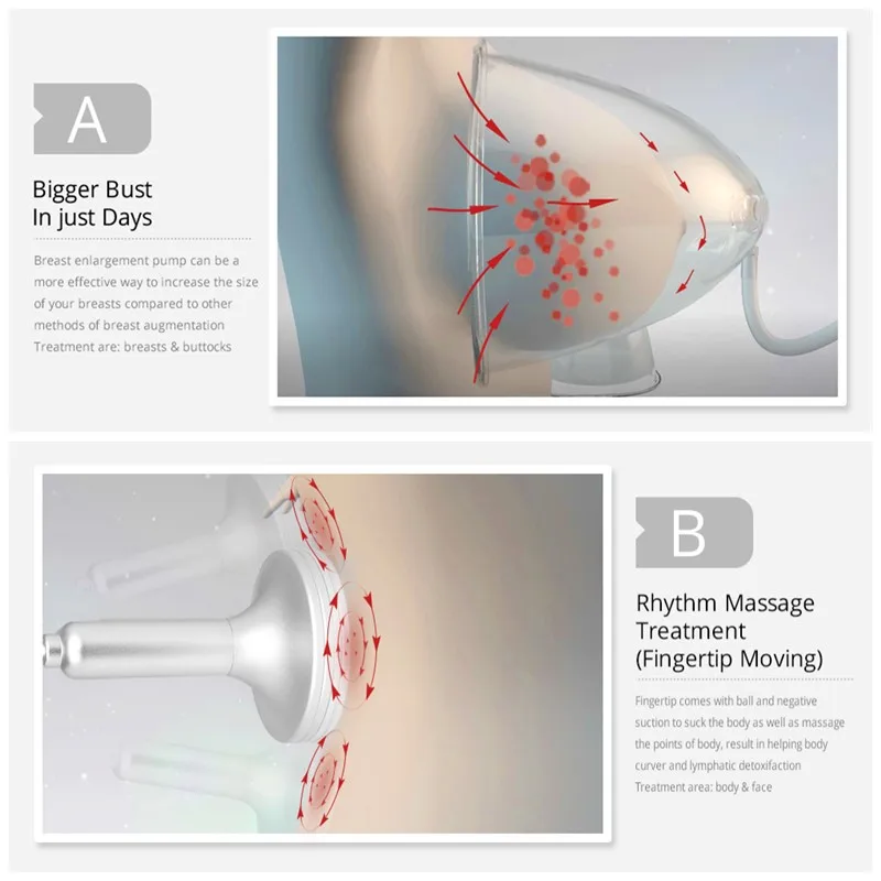 2. Одна машина может достичь многих эффектов. Например, увеличение груди, лимфатическое детоксикация лица и тела, массаж, подтяжка ягодиц, подтягивание бедра.