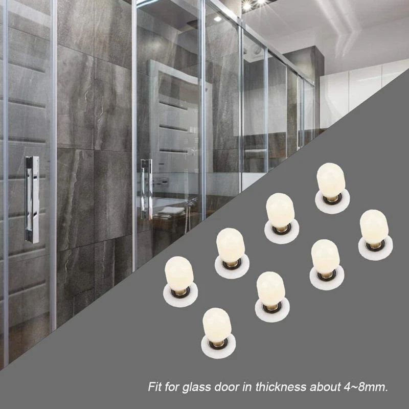 [Длительный срок службы]-ролик душевой двери изготовлен из высококачественной латуни и винтов из нержавеющей стали. Он имеет характеристики антикоррозийной, прочной и долговечной, стабильного качества и длительного срока службы.