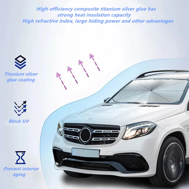 Зонтик структура ветрового стекла солнцезащитный козырек имеет десять стальных ребер обеспечивает хорошую поддержку и предотвращает падение вниз. Он блокирует УФ-излучение внутри, вам не нужно беспокоиться о потере или краже.
