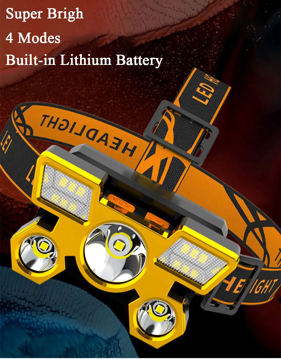 Новая модель. Встроенный литий-ионный аккумулятор, не нужен какой-либо другой внешний аккумулятор, легкий, чем другой налобный фонарь, just125g
