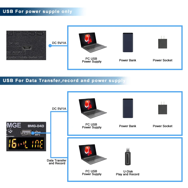 【Микро-зарядка через USB/48В Мощность】Designed с micro usb порт, BOMGE BMG-04D смеситель может быть питание от компьютера, адаптер питания и power bank, обеспечивая в то же время 48В для микрофонов XLR Сделано в Китае штепсельной вилки. Зарядка и передача данных одновременно. При подключении к компьютеру миксер может оптимизировать голос компьютера через функцию звуковой карты.