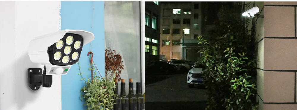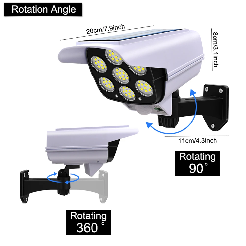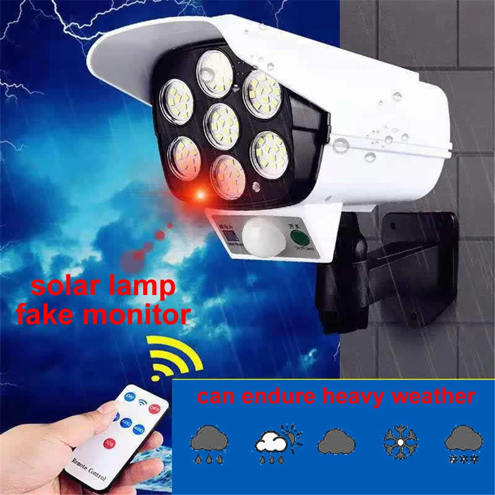 Солнечный светильник с датчиком движения муляж системы безопасности, камера, поддельный монолитный беспроводной наружный прожектор IP65, водонепроницаемая 77 светодиодный ная лампа, 3 режима для дома и сада с пультом дистанционного управления