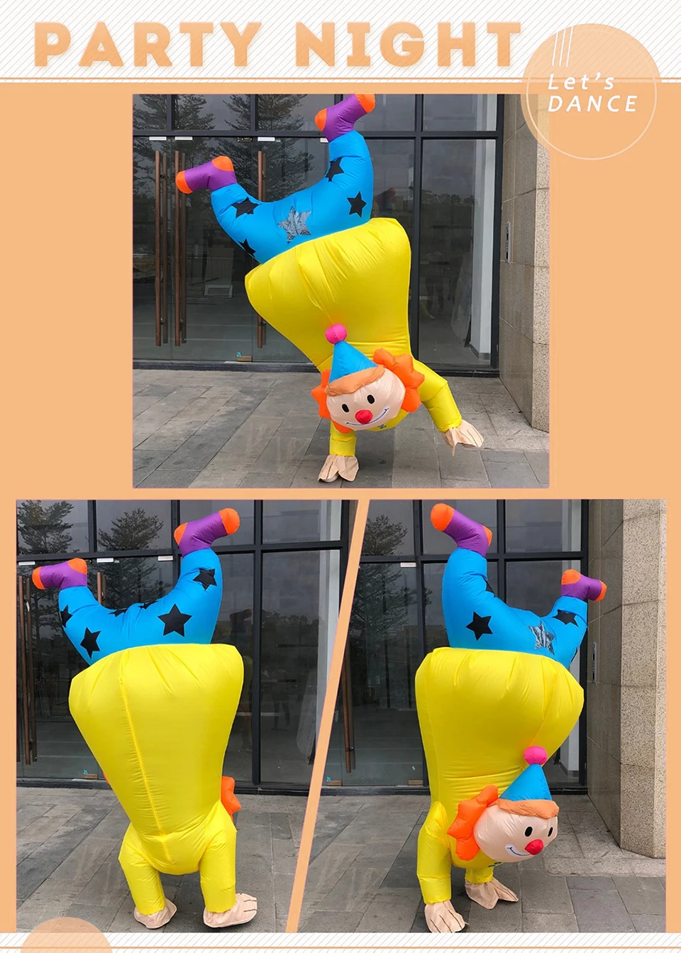 Перевернутый клоун выглядит забавно и мило. Человек, носящий костюм, стоит, но при просмотре со стороны он перевернут вверх дном, добавляя больше забавных эффектов. И этот продукт является 100% полиэстером и водонепроницаемым. Высокая прочность и стойкость к истиранию ткани делают срок службы изделия более продолжительным.