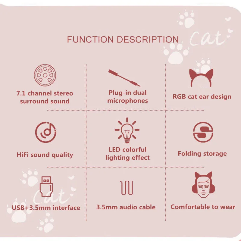 Совершенно новая гарнитура с кошачьими ушками, забавная игровая гарнитура.