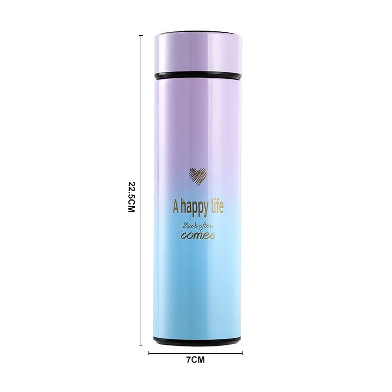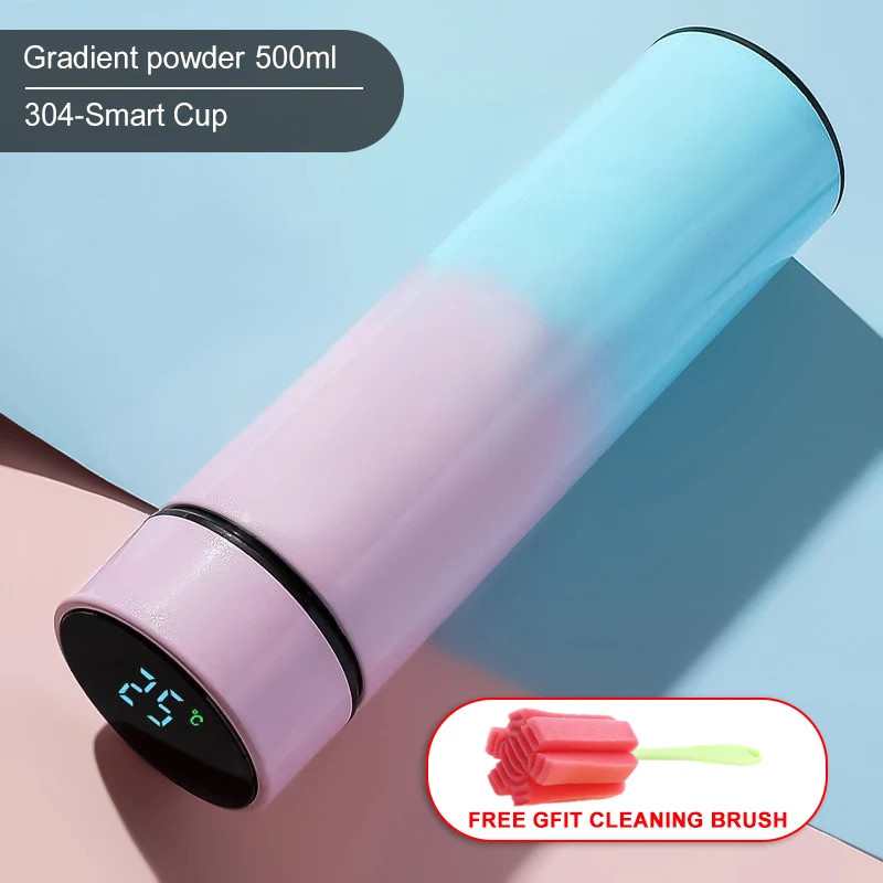 << Temperature LED display: This water bottle has a LED intelligent temperature display on the top of the bottle which does not need battery change. That's approx. 3+ years of usage. The warmth of every moment you can see just by gently touching the top of the bottle cover. Press the top of the bottle softly, the cover can show the temperature of water inside the water bottle immediately that can avoid the embarrassment of burning your mouth.