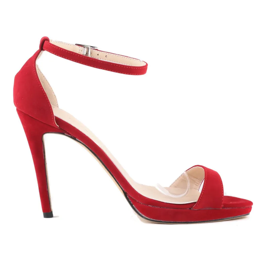 Брендовые пикантные женские босоножки из флока с открытым носком; Летние туфли на высоком тонком каблуке и платформе с пряжкой; Женские вечерние туфли-лодочки; Цвет красный, черный