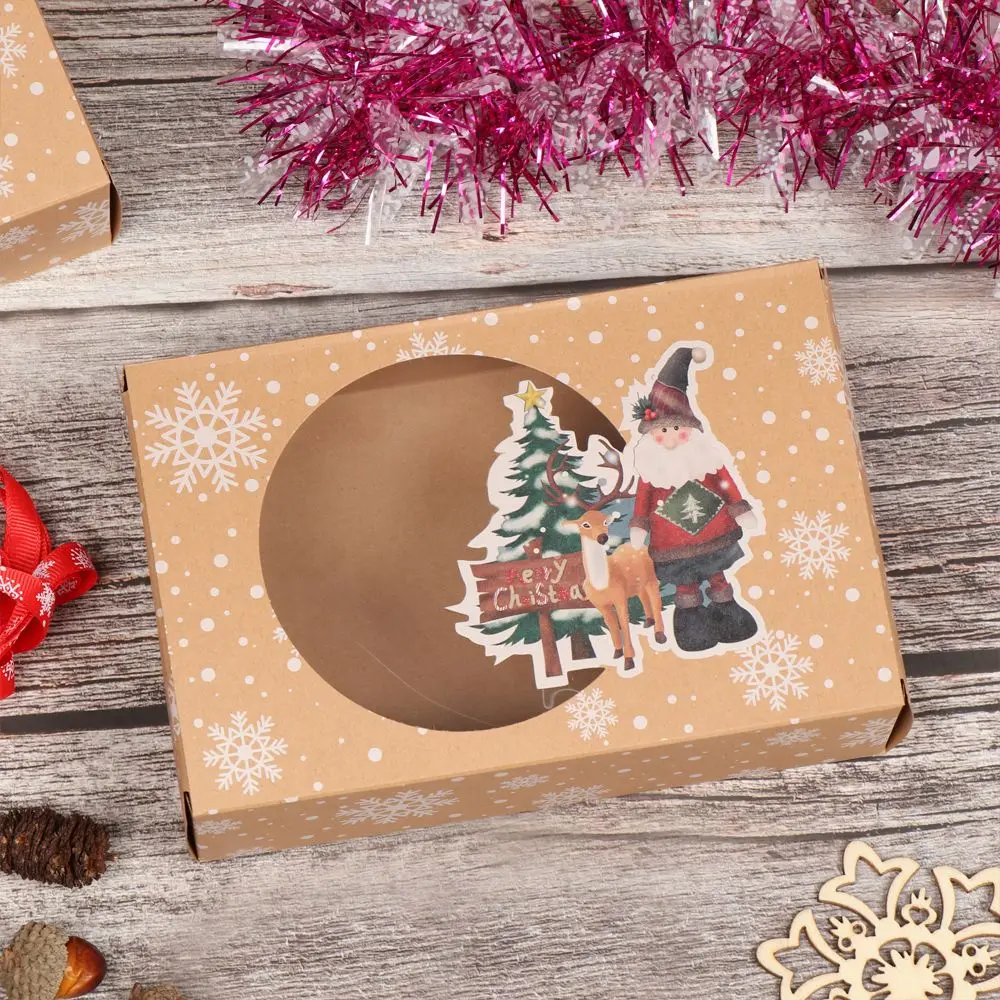 * Материалы-наши рождественские крафт-коробки для вечеринки изготовлены из высококачественной крафт-бумаги, прозрачного окна и снежинки, безопасны и пригодны для повторного использования, прочные и без запаха. Упаковочная коробка не может быть повреждена и не вредна для пищи.