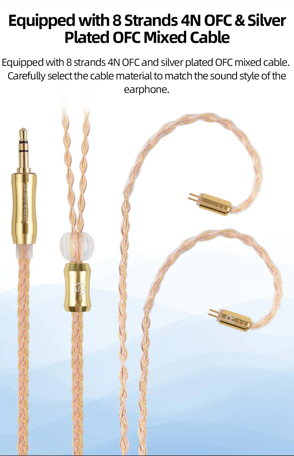 12. Кабель:8 нитей 4N OFC и посеребренный OFC смешанный кабель