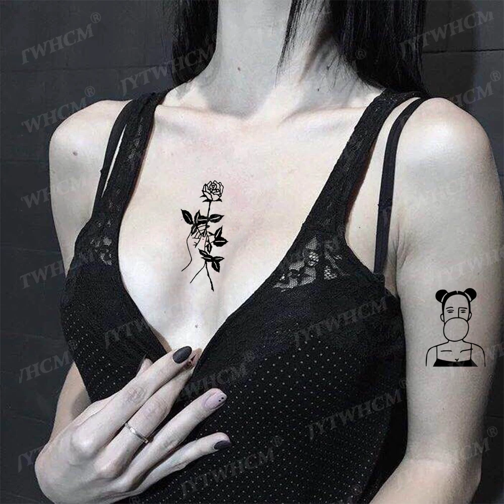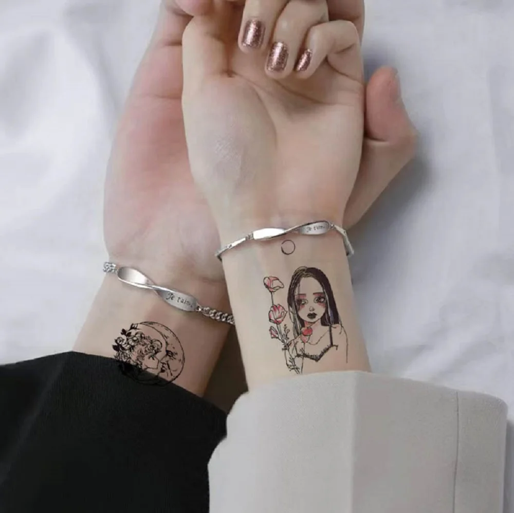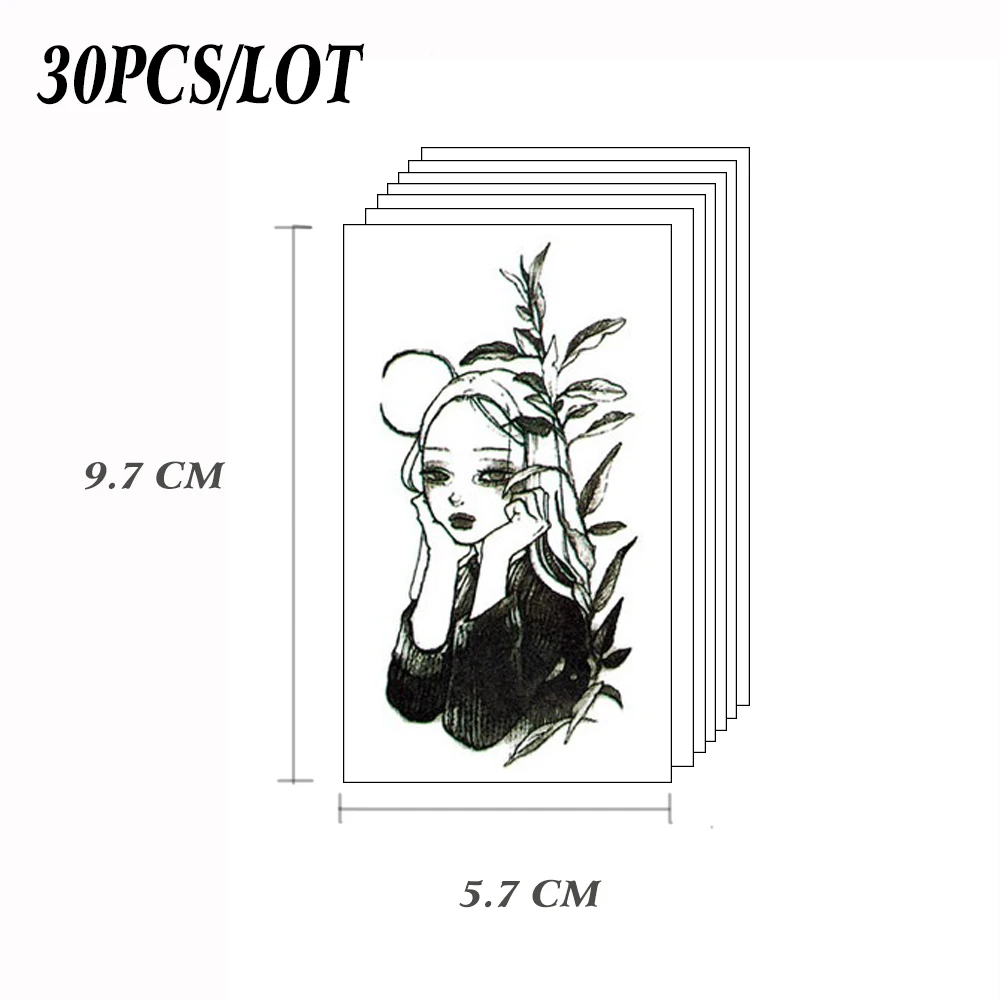 30 Sheets Temporary Tattoo Stickers Dark Black Moon Dark Wind Manga Portrait Girl Japanese Tatto Fake Tatoo Waterproof Sticker