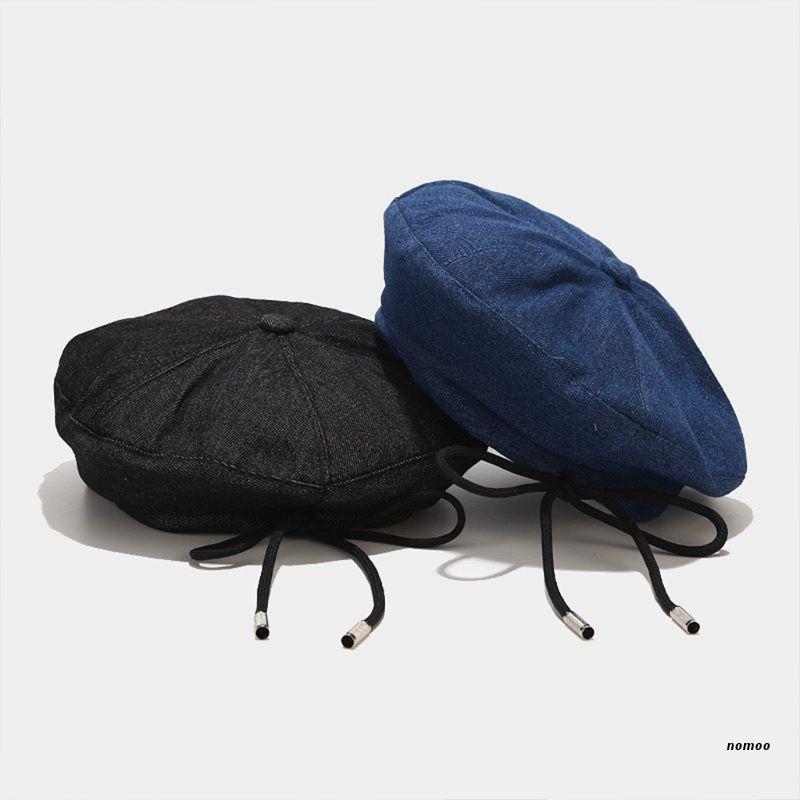 Женский джинсовый хлопковый берет со шнуровкой и бантом Newsboy Painter Beanie Hat