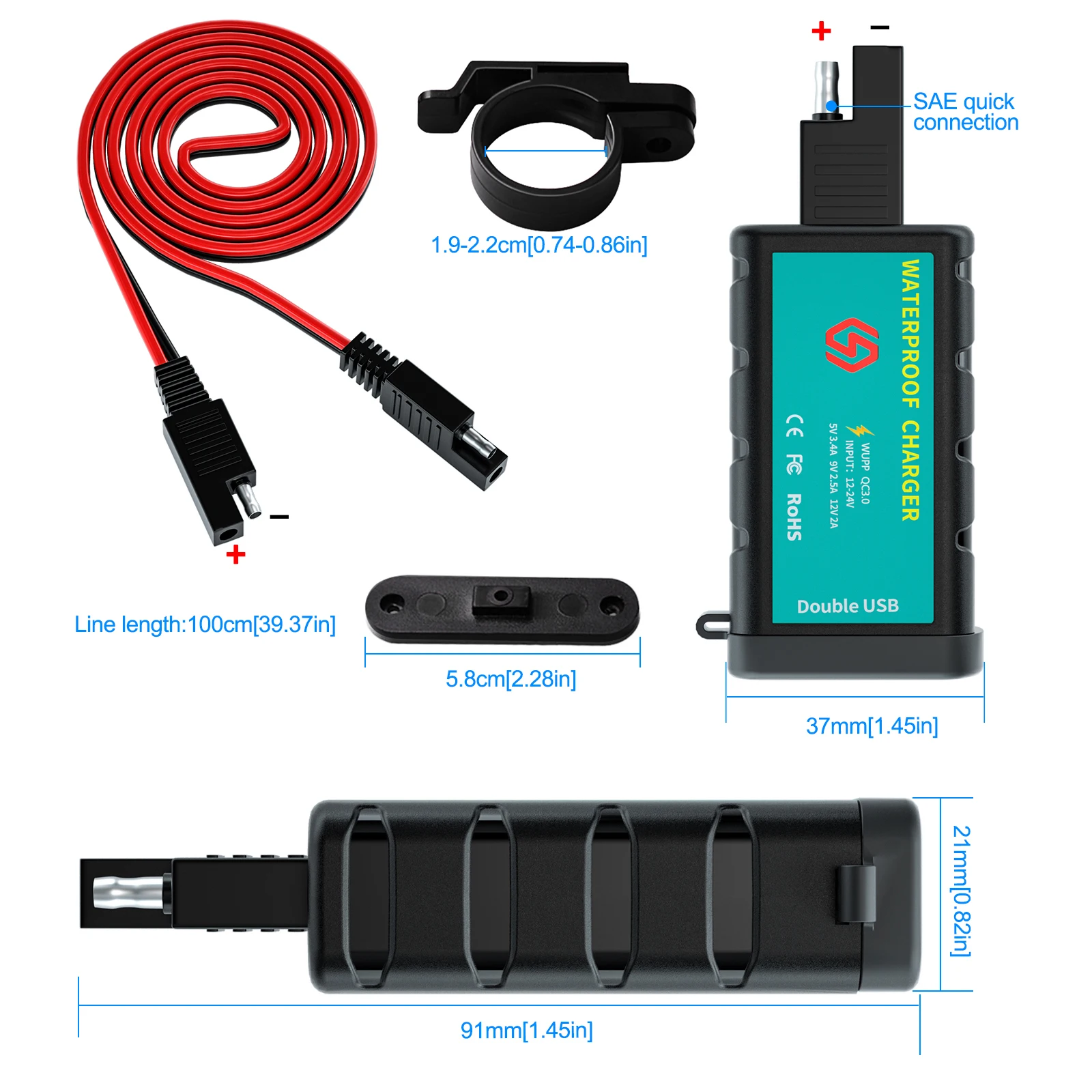 Мотоцикл Зарядное устройство адаптер вольтметр вкл/выкл переключатель двигатель Мотоцикл Скутер мобильный телефон SAE USB TYPE C порт быстрая зарядка