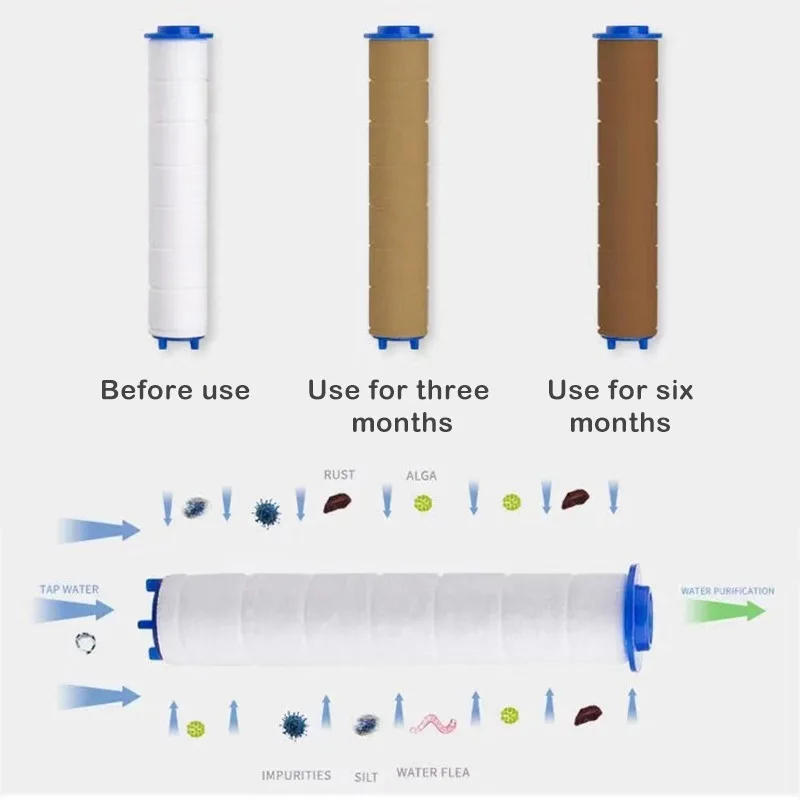 <Хлопковый фильтр: впитывает грязь, пыль и другие вещества в воде, очищая воду для душа и отслеживая качество воды.