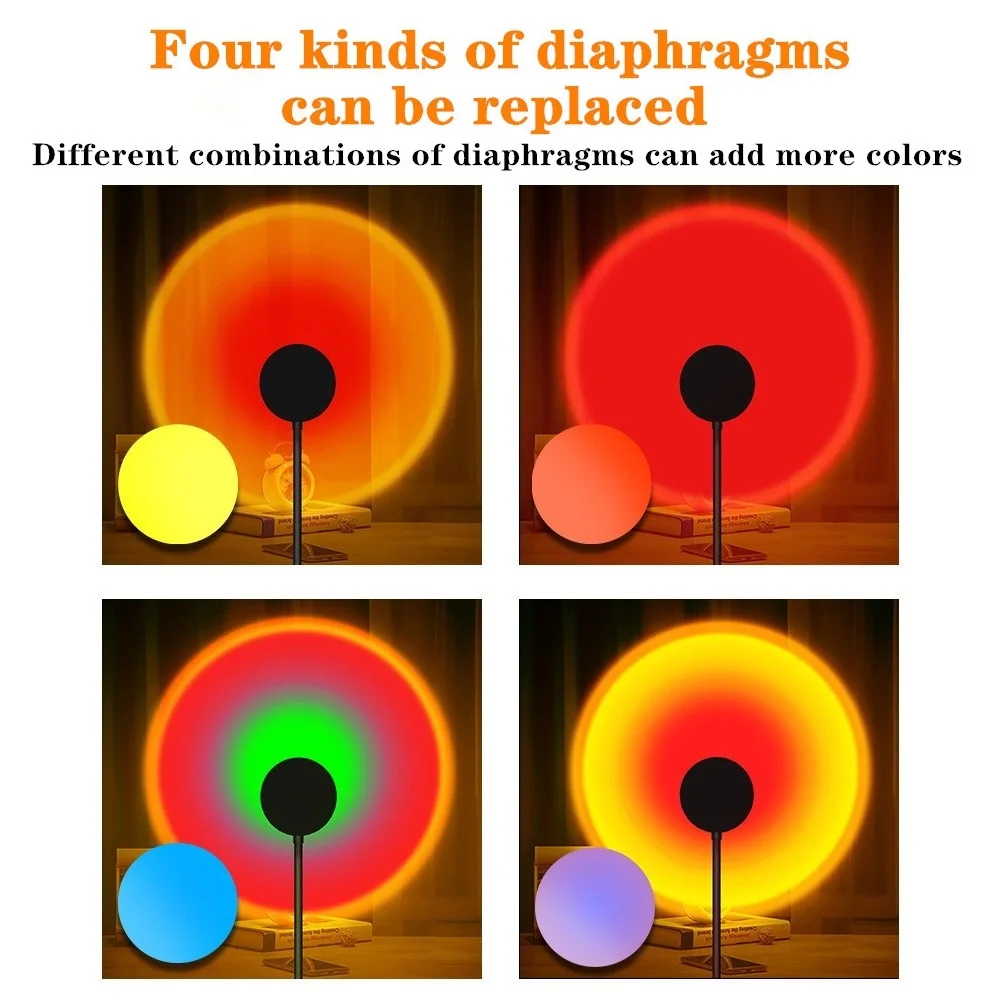 【 3 поколение Upgrade】:4 цветные пленки позволяют вам получить 4 вида атмосферы одновременно. Выберите свой любимый фильм или 2 пленки, чтобы создать новый цвет. Светильник для проектора sunset rainbow для детей и взрослых использует HD Кристальный объектив, который имеет более сильный свет светильник передачи и более широкий рефрактор, чем обычный ночной Светильник проектора, он принесет более реалистичные эффекты звездного проектора.