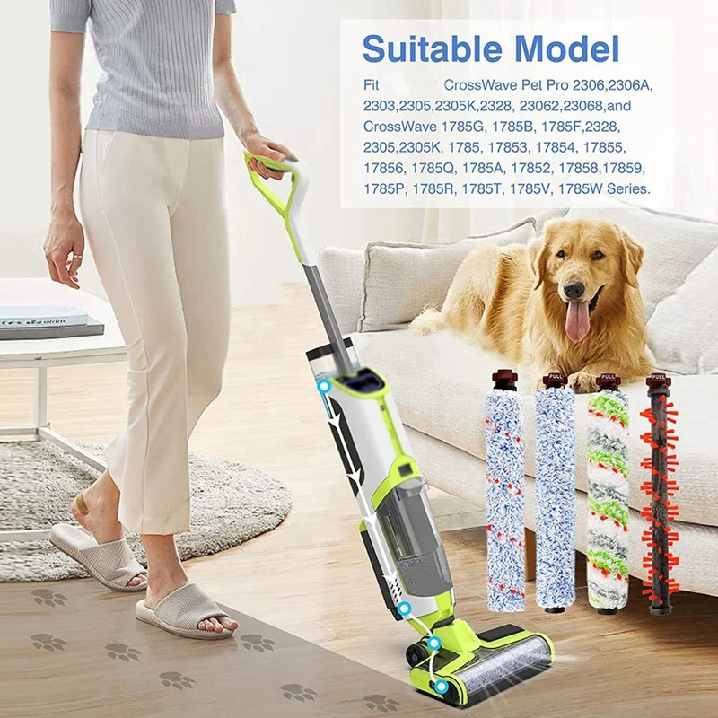 [Многофункциональные аксессуары]-Роликовые щетки для ковров совместимы с роликами для ковровых щеток Bissell CrossWave. Запасные части номер 1934 1608017 1785 аксессуары. Многоповерхностный валик щетки для домашних животных использует инновационную ABS и фланелевую щетку для одновременной протирания и сбора сухого мусора. Сменный номер 1934 1868 1926. Деревянная щетка для пола валик-мягкая щетка из микроволокна для подметания и очистки герметичных деревянных полов.
