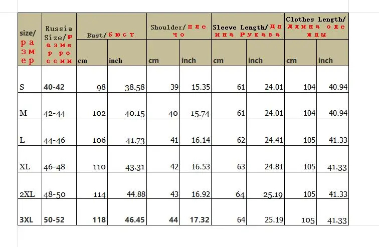 Таблица размеров