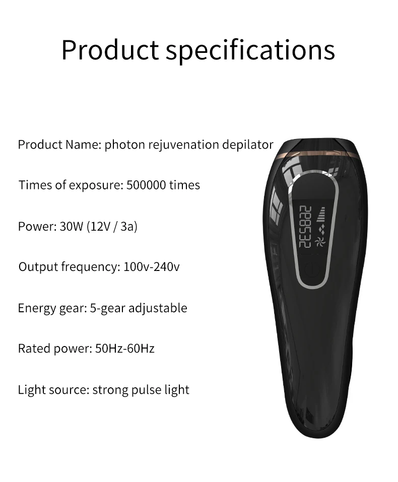 Посылка в том числе: основная машина, бритва, очки, адаптер, руководство пользователя