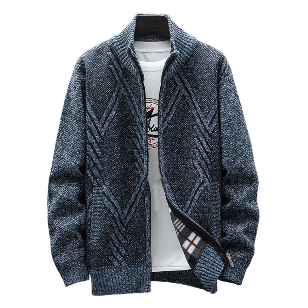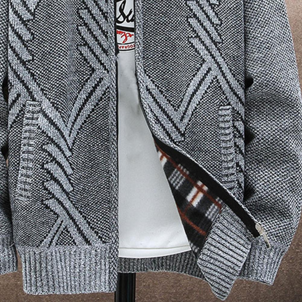 Боковые карманы могут держать вашу руку подальше от холода. Это модный и красивый мужской кардиган с геометрическим узором и застежкой-молнией.