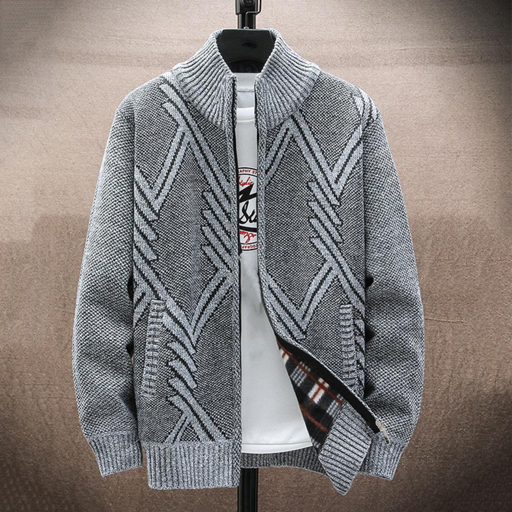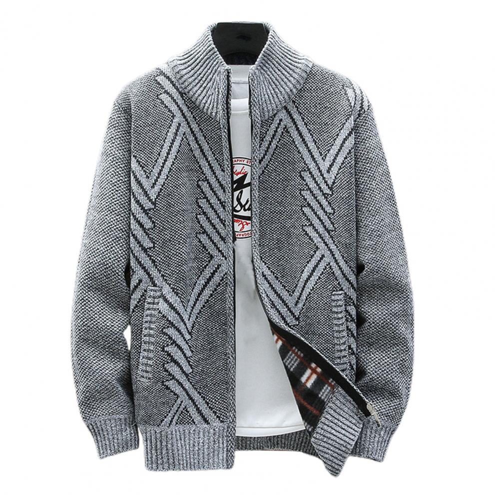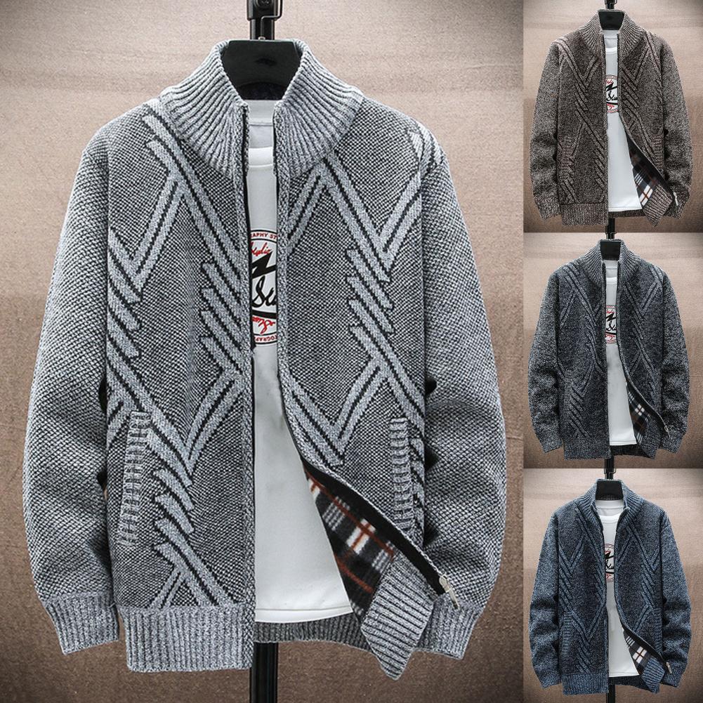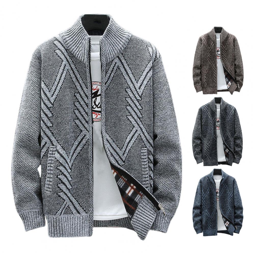 Вязаный мужской кардиган с длинным рукавом, устойчивый к холоду, Осень-зима, геометрический узор, воротник-стойка, свитер, пальто, верхняя одежда для праздника