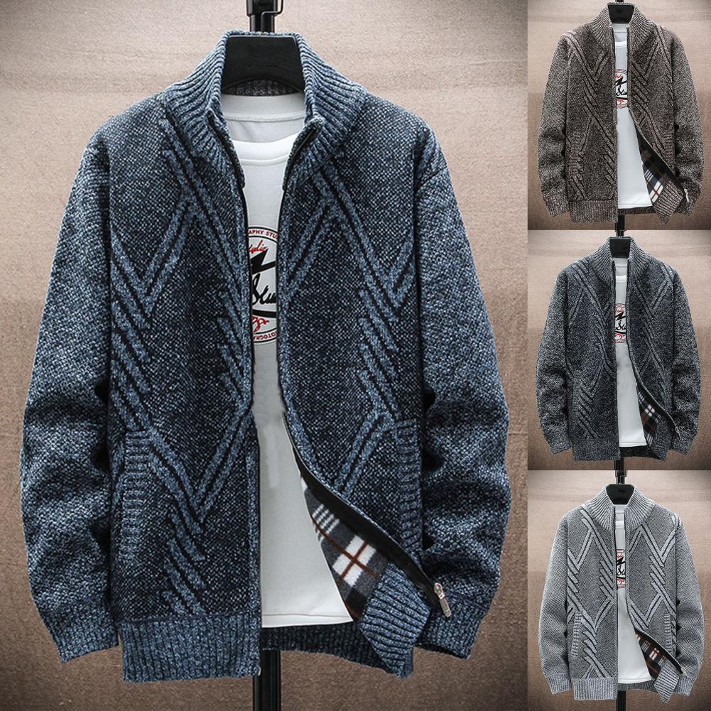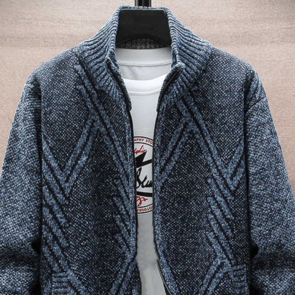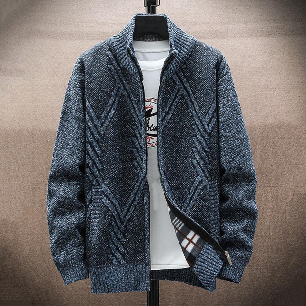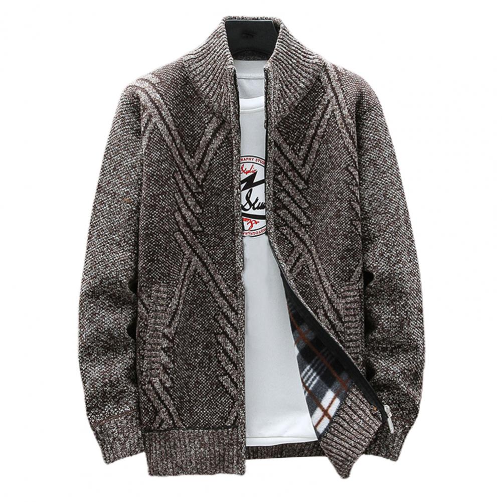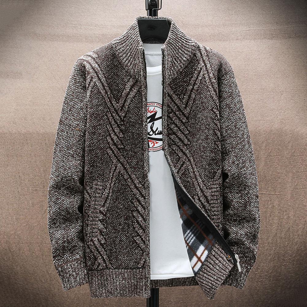 Вязаный мужской кардиган с длинным рукавом, устойчивый к холоду, Осень-зима, геометрический узор, воротник-стойка, свитер, пальто, верхняя одежда для праздника