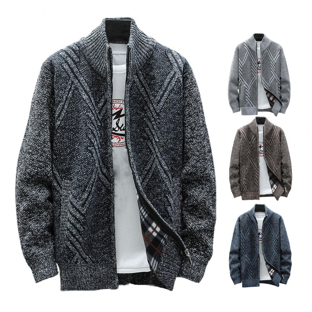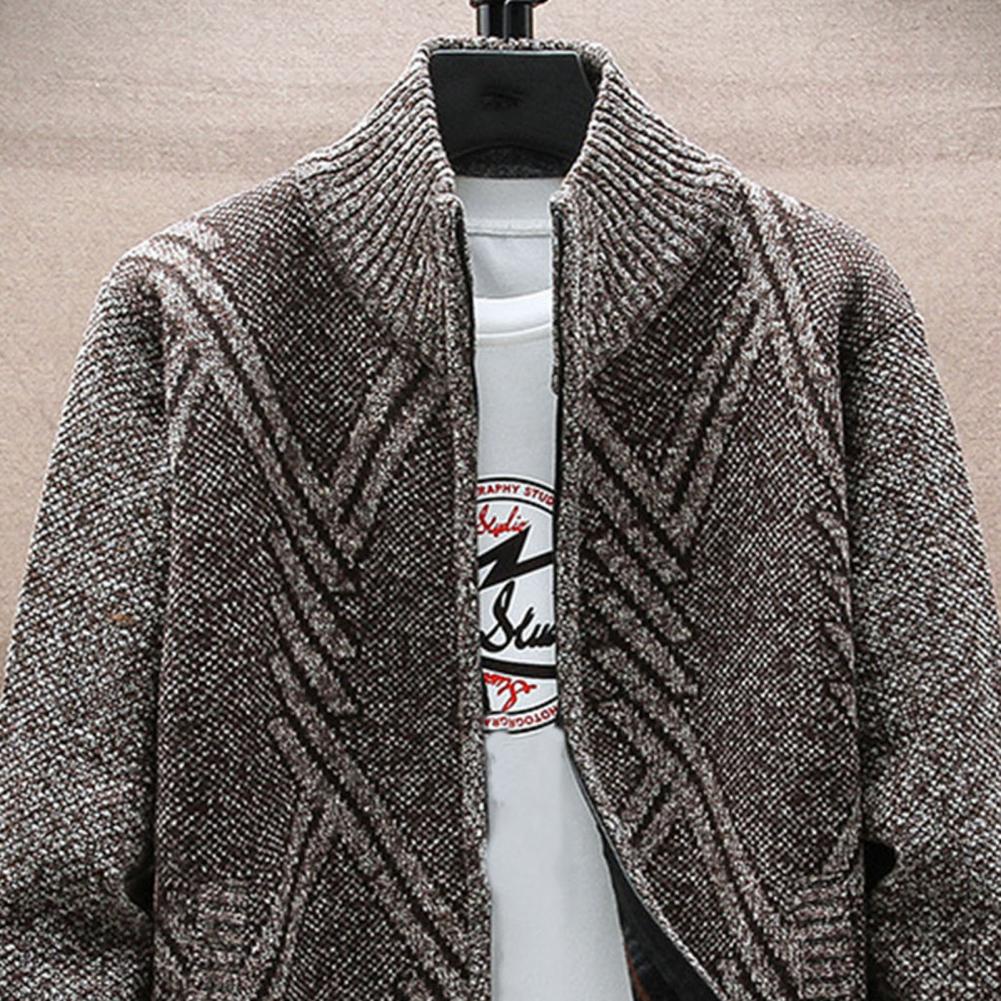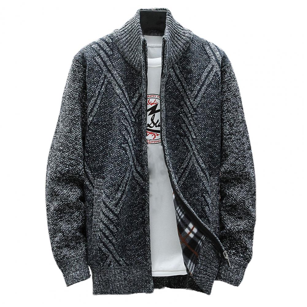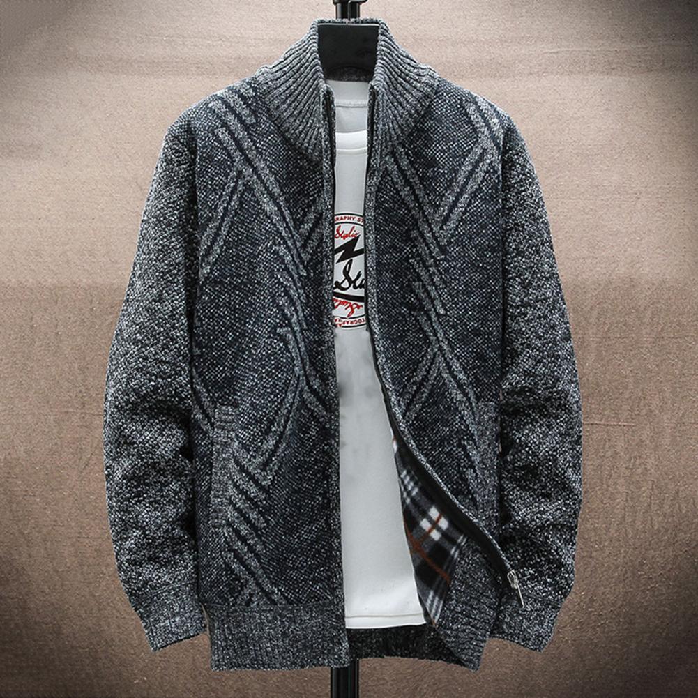 Вязаный мужской кардиган с длинным рукавом, устойчивый к холоду, Осень-зима, геометрический узор, воротник-стойка, свитер, пальто, верхняя одежда для праздника