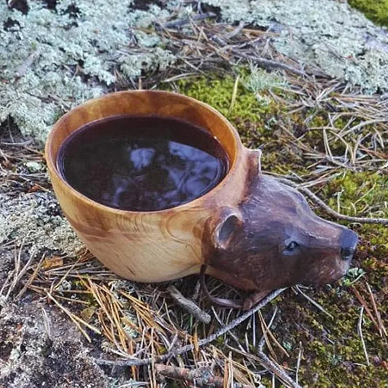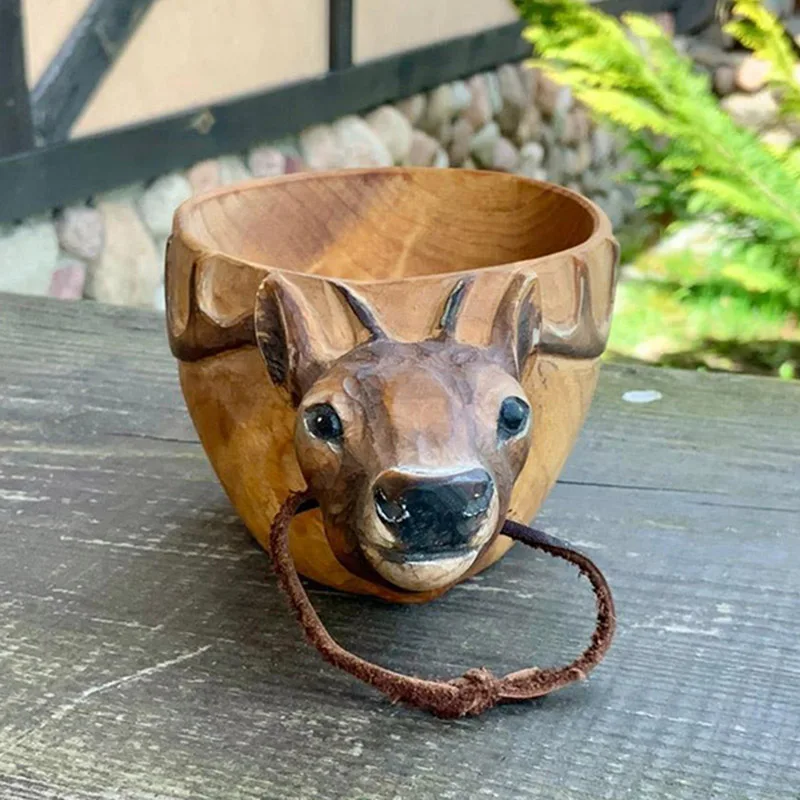 3. Деревянная чашка с животным узором изготовлена из высококачественной древесины, приятная на ощупь.