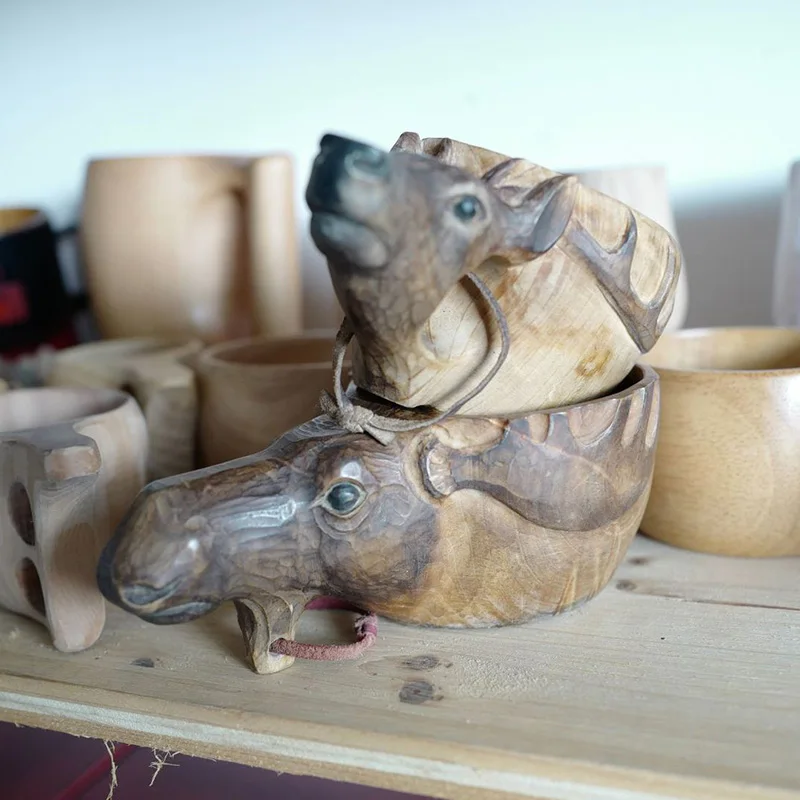 Стиль: ручная чашка с резьбой скандинавские деревянные кружки Kuksa