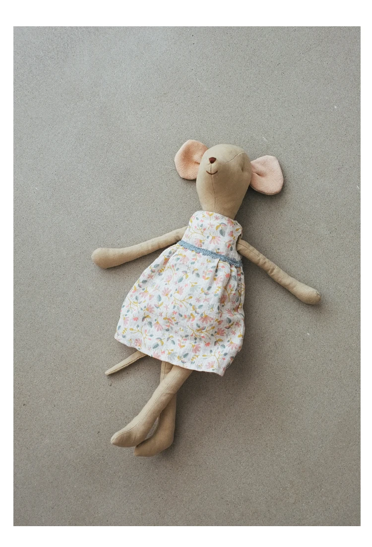 Мягкое хлопковое льняное тканевое платье с мышкой, съемное платье, ручная работа, маленькая мышка, кукла, набивная Мышка для девочек