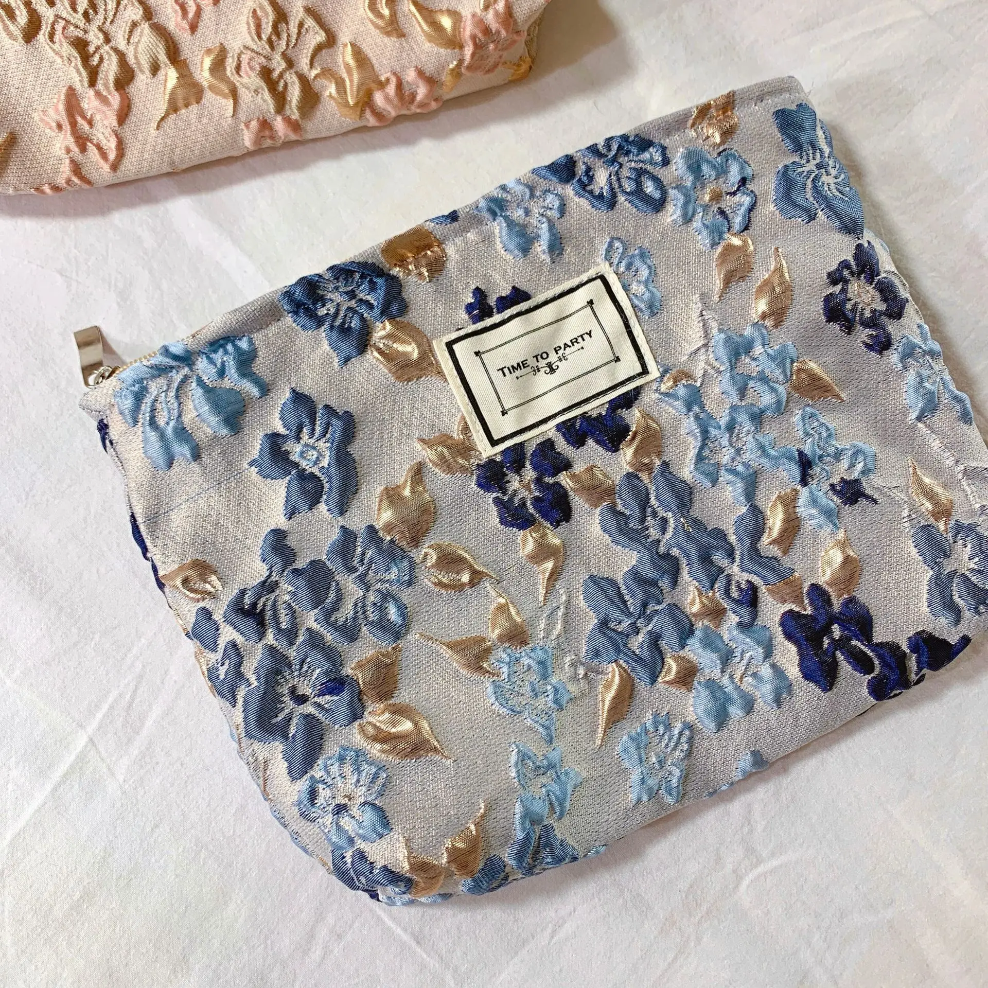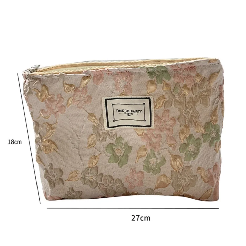 Сумка для макияжа на молнии в Корейском стиле, Женская Роскошная жаккардовая сумка для макияжа с цветами, женская косметичка с цветочным узором