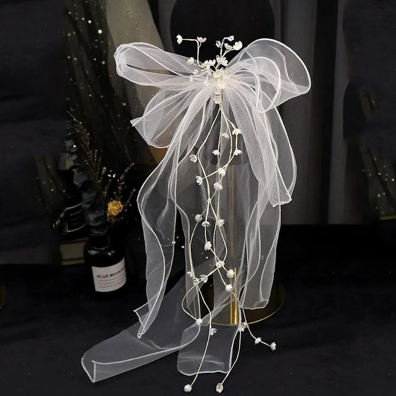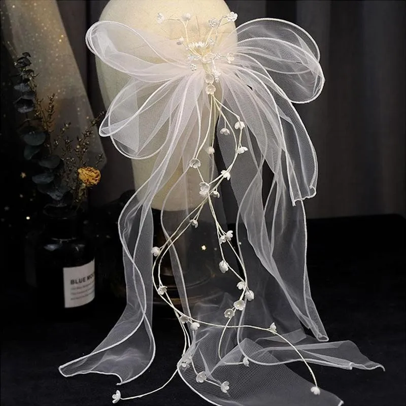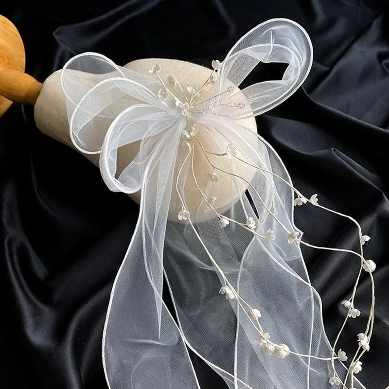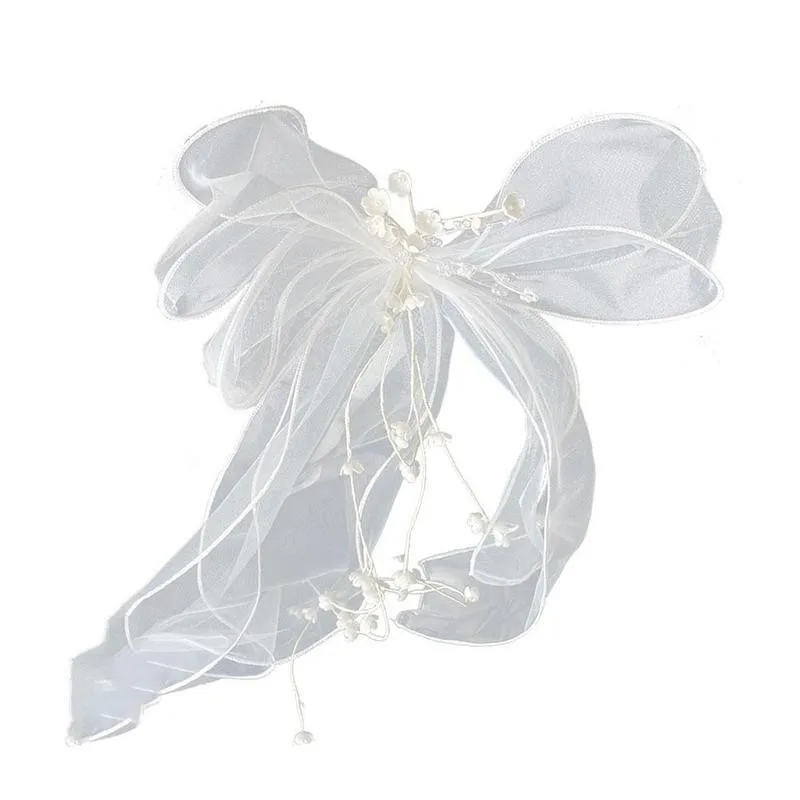 Новинка, свадебное платье для невесты, головной убор, чистая пряжа, ручная работа, вуаль, красивый темперамент, боковой зажим, бант, волнистая Шпилька, белые сетчатые клипсы для вуали