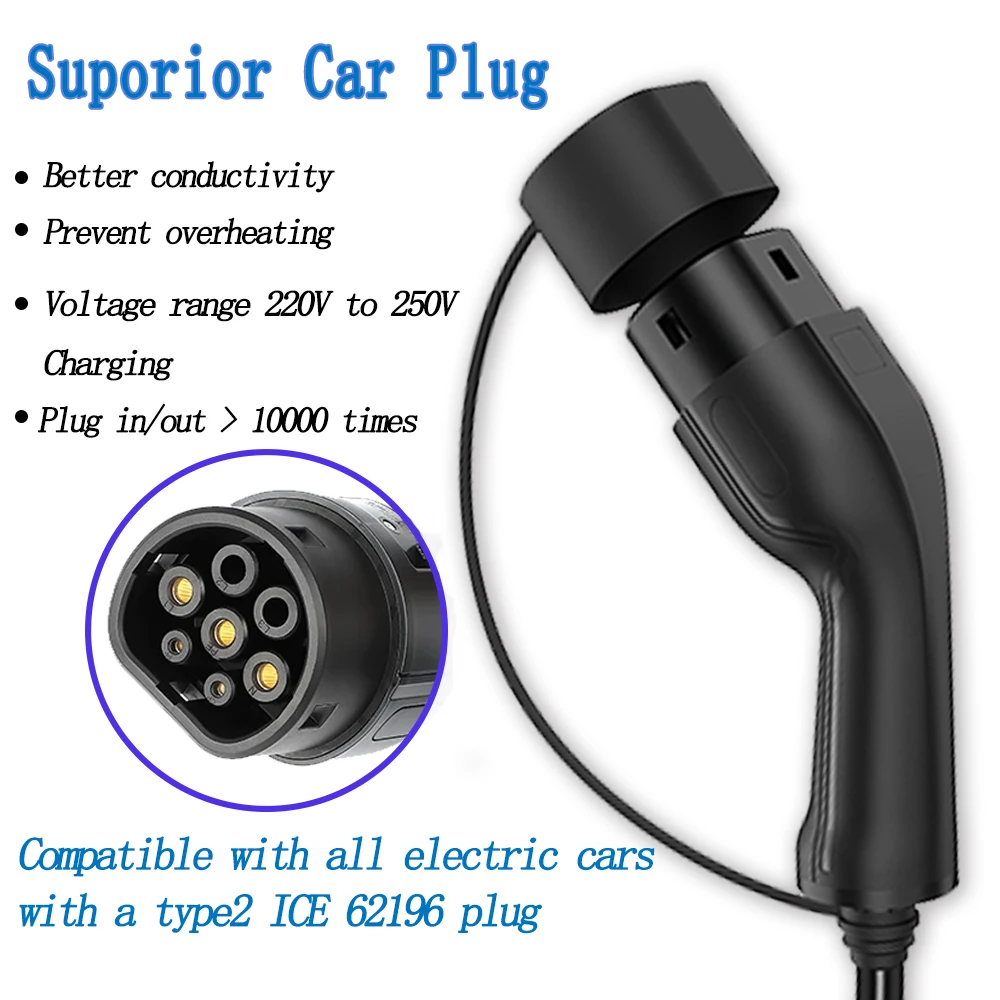 Электромобиля EV Зарядное устройство Тип 2 16 Amp Портативный EVSE, евровилкой 220V-240V автомобильный зарядный кабель, IEC 62196-2