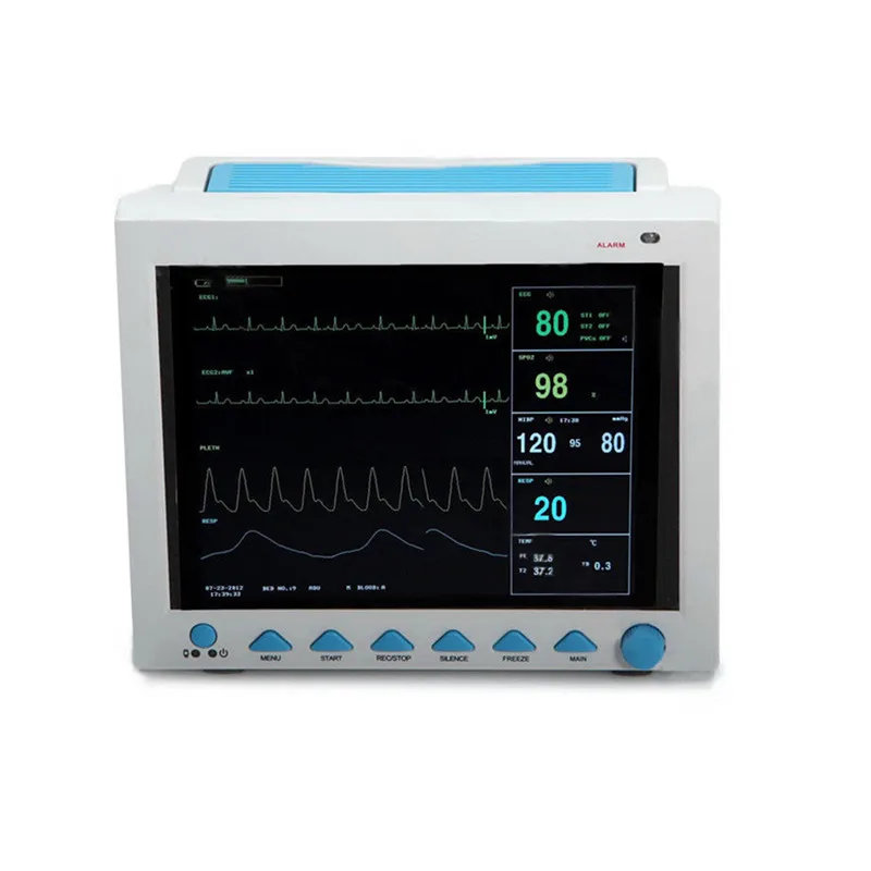 1. ФункцииСтандартные параметры: ECG, RESP, SpO2, PR, NIBP, двухканальная температура, термопринтер1) Пульс ЭКГ (HR)ЭКГ сигналАритмия и анализ ST-segment2) Частота дыхания респ (RR)Форма волны дыхания3) насыщение кислородом SpO2 (SpO2)Форма волны Plethysmogram(PLETH)Частота пульса (PR)Гистограмма4) Систолическое давление NIBP (SYS), диастолическое давление (DIA), среднее давление (Среднее)5) Температура T1, T2, TDОн имеет множество функций, таких как звуковая и визуальная сигнализация, хранение и вывод трендовых данных, измерение NIBP, маркировка аварийных событий и Расчет концентрации лекарств и т. д.