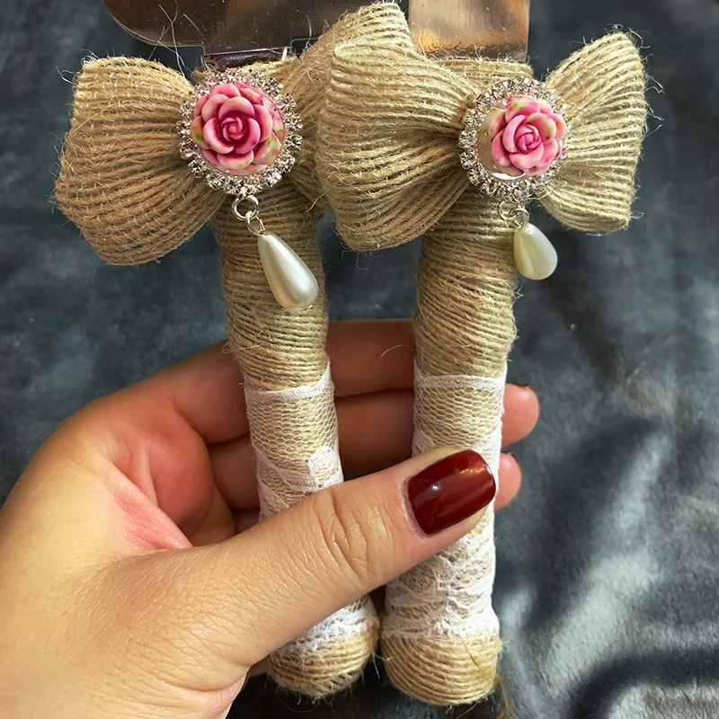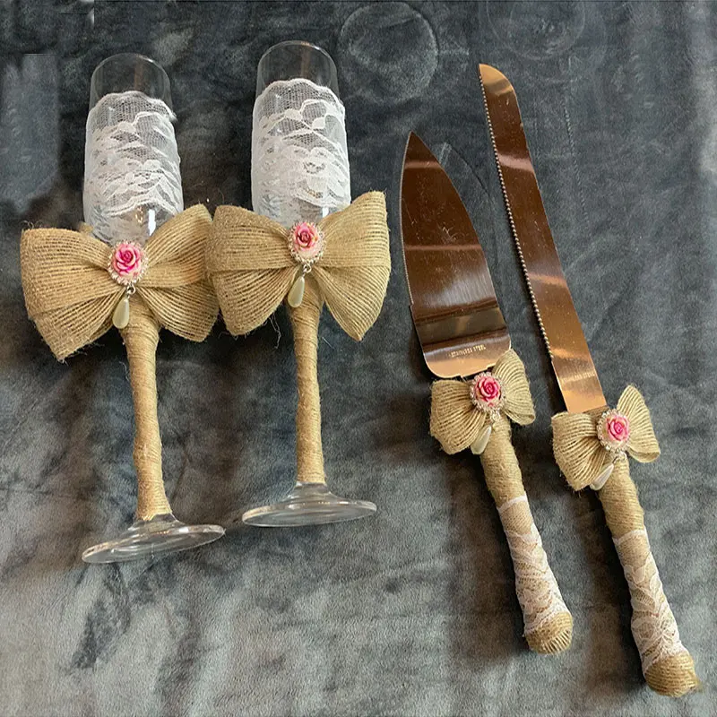 ❤В комплект входит: 1 зубчатый нож 1 ломтик пирога с декоративным бантом из ленты, кристаллом, ручками из ленты и 2 Флейта шампанского для идеального элегантного и утонченного набора сервировки еды