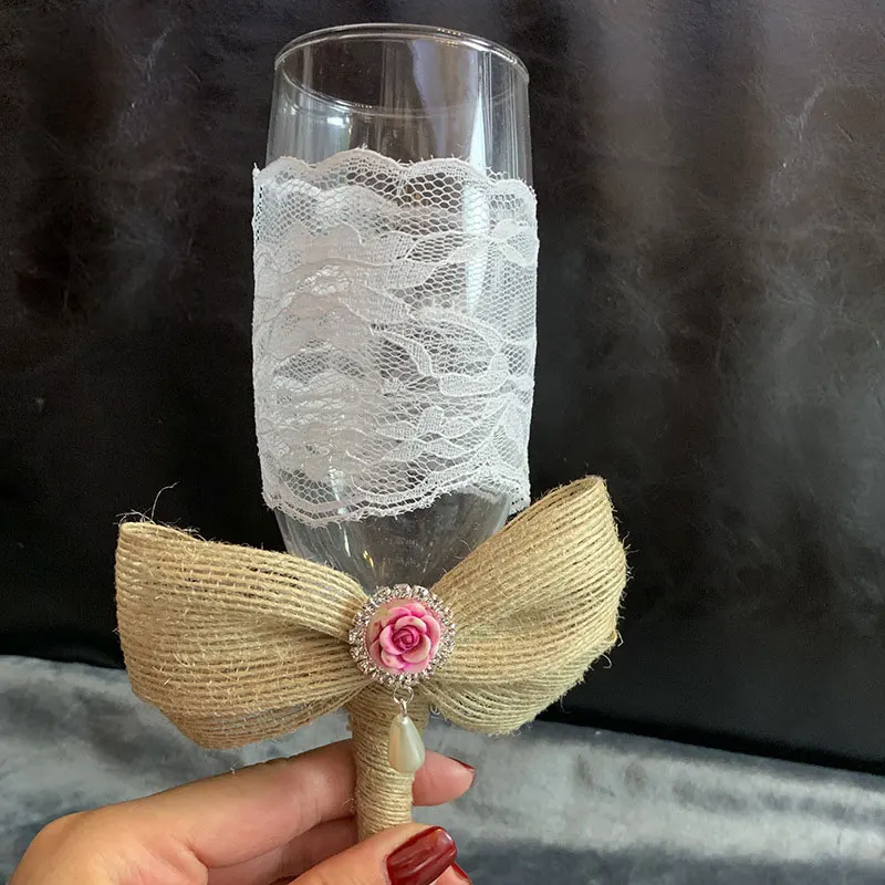 ❤Элегантные флейты шампанского: оба флейта шампанского являются идеальным дополнением для романтических обедов, а также для хранения шампанского, вина или стильного коктейля. Очки украшены кружевным хлопком и бантом из ленты, кристаллами, ленточным тросом, что придает дополнительную элегантность.