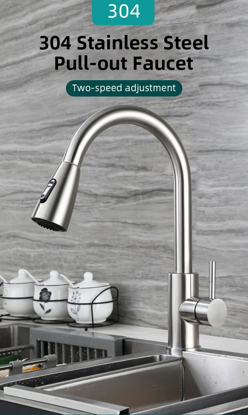 Смесители для кухни смеситель из нержавеющей стали с одним отверстием выдвижной носик кран горячей и холодной воды смеситель для кухонной раковины кран струйный распылитель