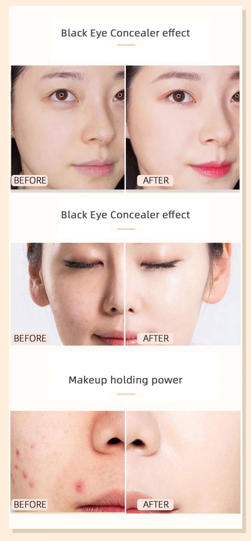 3. Отличная сила пребывания: водостойкий консилер, не легко удаляет макияж, длительный эффект макияжа