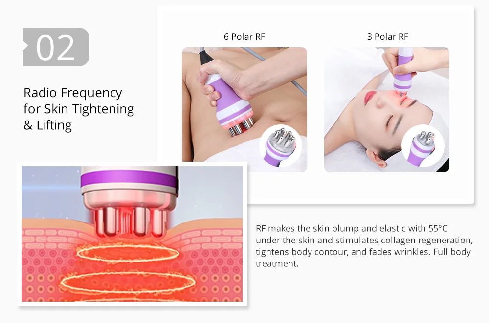 The ultrasonic wave of the cavitation 2.0 to break down the fat deposits, and subsequently eliminated by the radio frequency by promoting blood flow under the outer layer of skin.