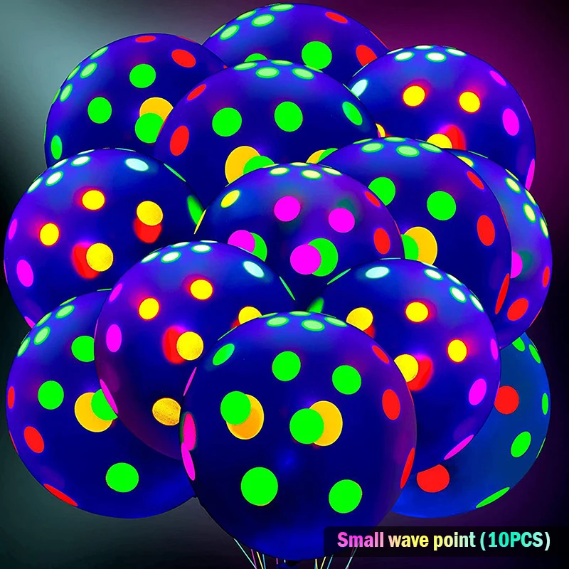 4. Светящиеся праздвечерние чные атрибуты: неоновые шары имеют яркие флуоресцентные цвета, которые могут излучать ярсветильник в темноте. Это может привнести блеск темным вечеринкам. Неоновые шары украшены красочными звездами, которые очень привлекают внимание. Вечером под различным освещением воздушные шары также сверкают, создавая красочную и живую среду вечерние.